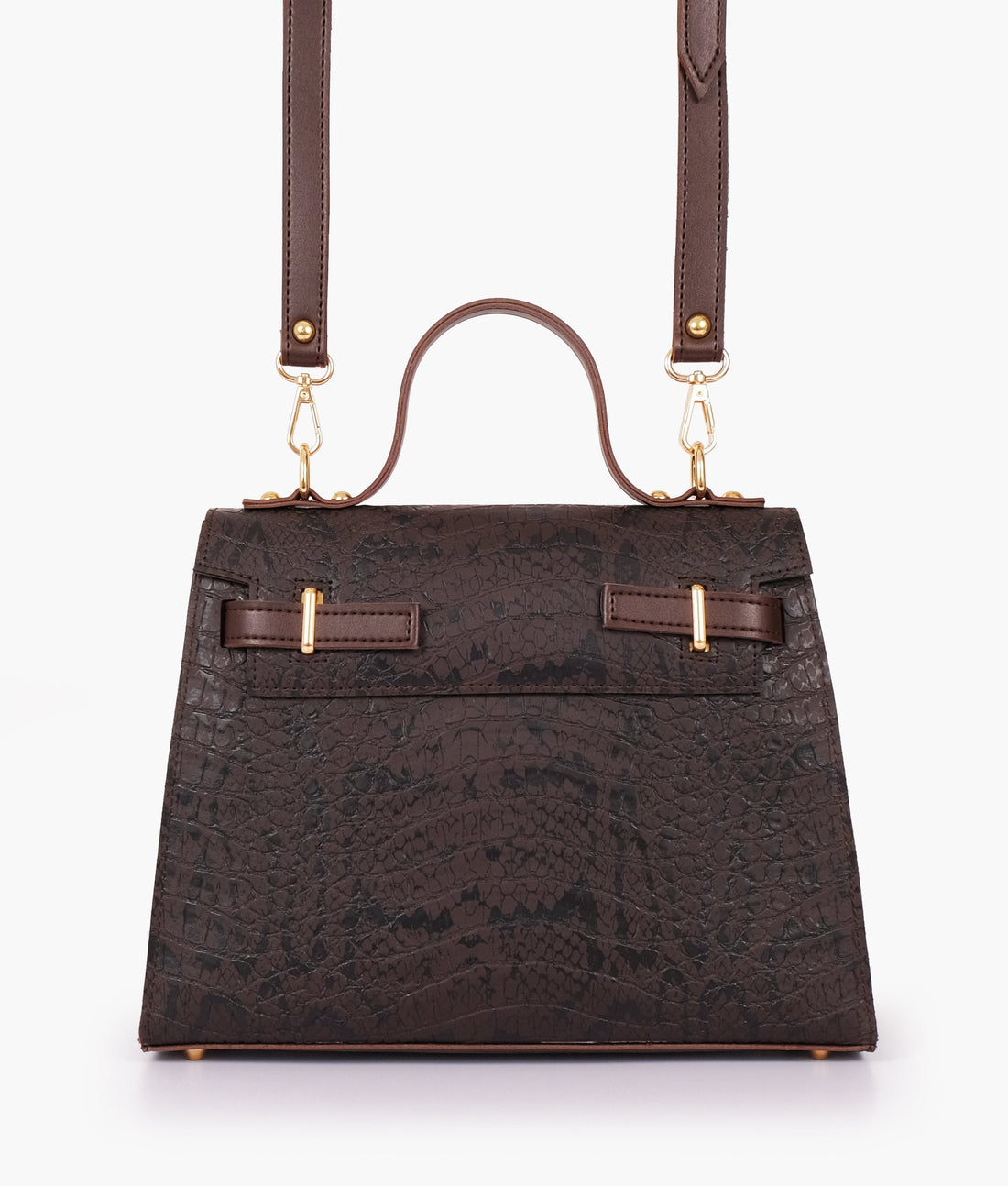 Dark brown crocodile cross-body bag with top-handle