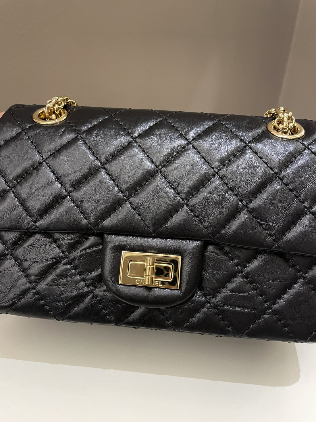 Chanel 2.55 226 Quilted Reissue Double Flap Black Aged Calfskin