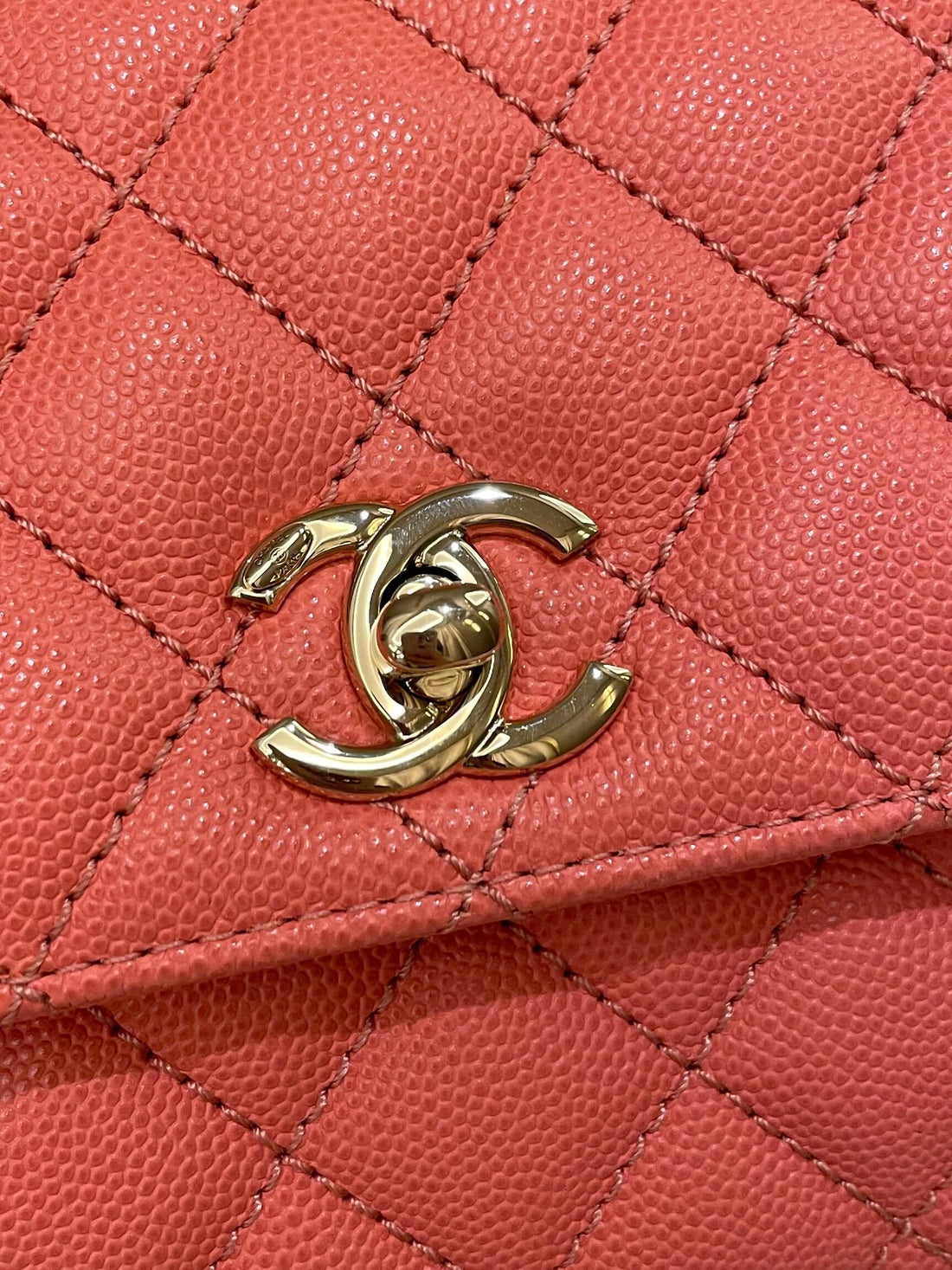 Chanel 22A Quilted Coco HandleCoral Pink Caviar LGHWSmall 23 x 13 x 10 cmMicrochipJune 20229.8/10...
