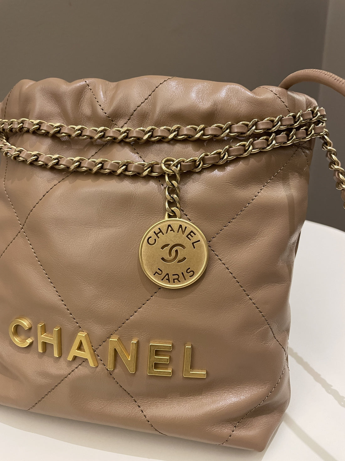 Chanel 23B 22 Mini Hobo Beige Calfskin