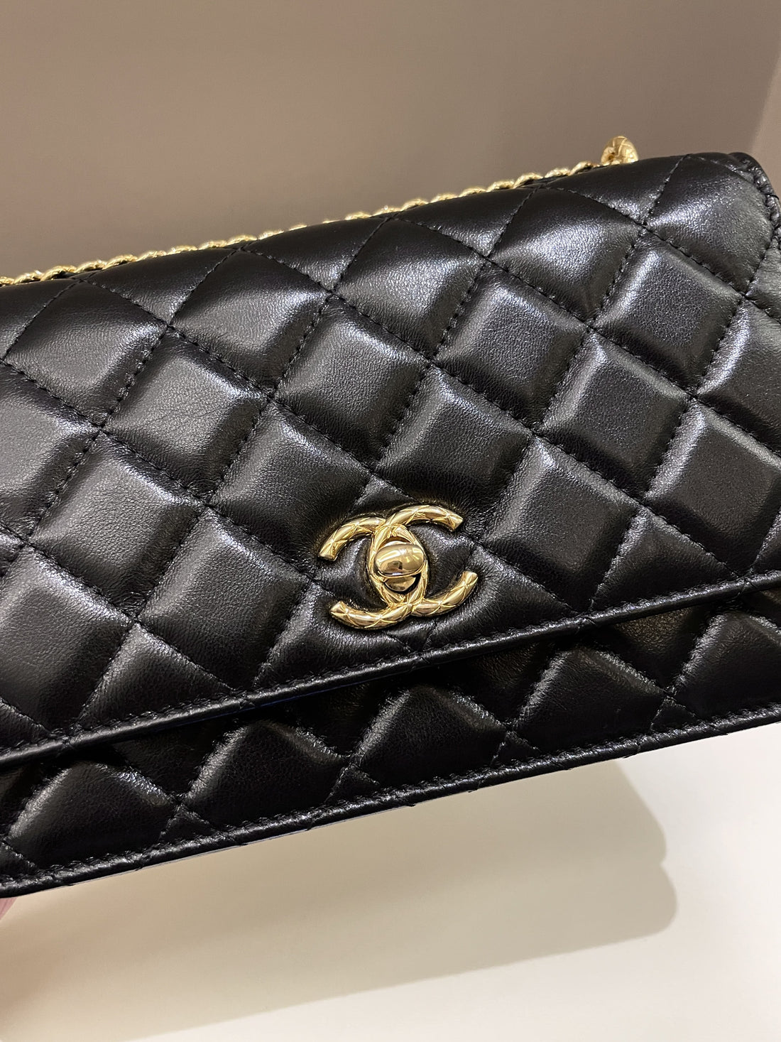 Chanel 23C Quilted Cc Wallet On ChainBlack Glazed GHWSize 19 x 12.5 x 4 cmAdjustable...