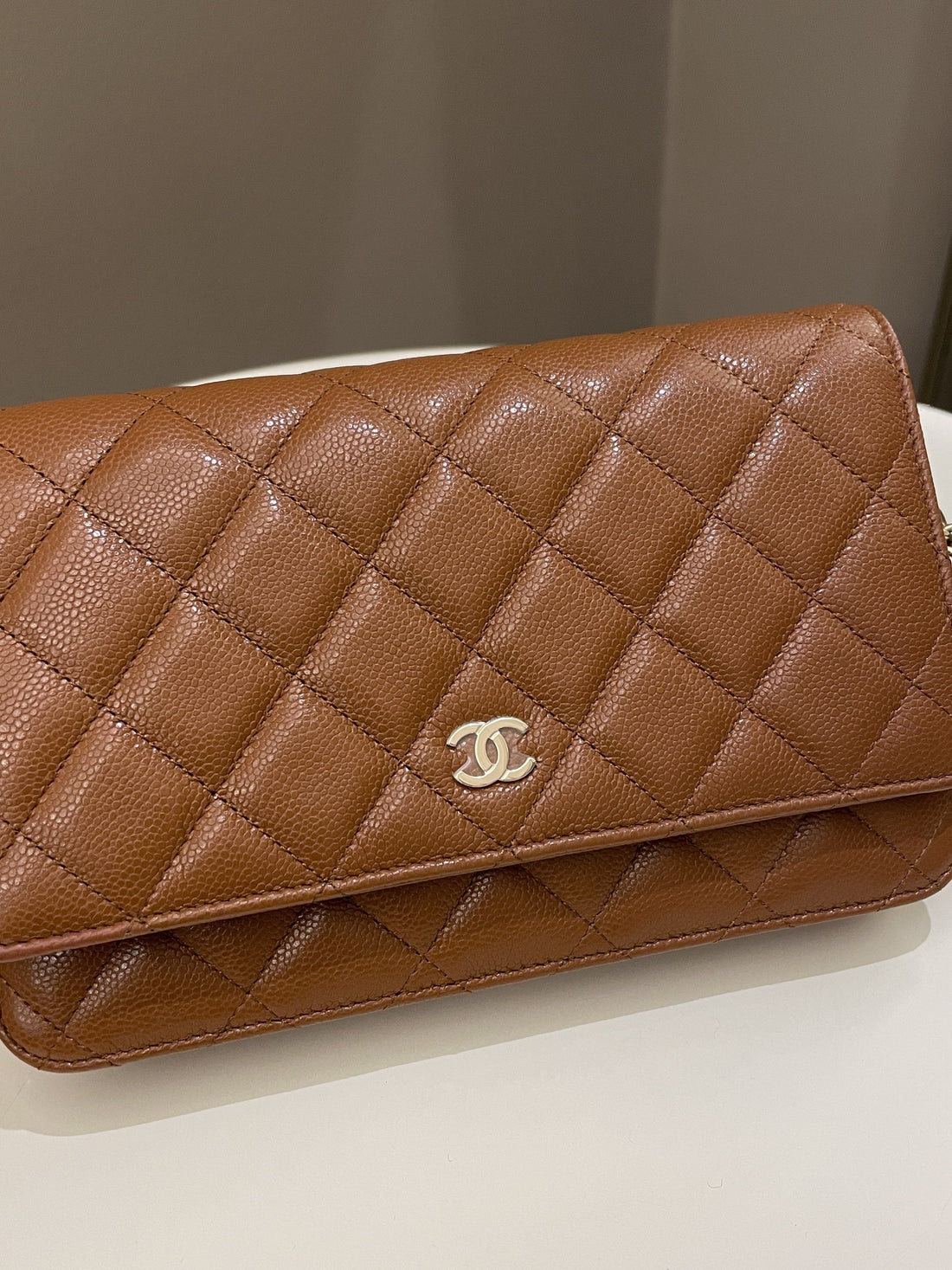 Chanel 23A Cc Quilted Wallet on Chain Tan Brown Caviar