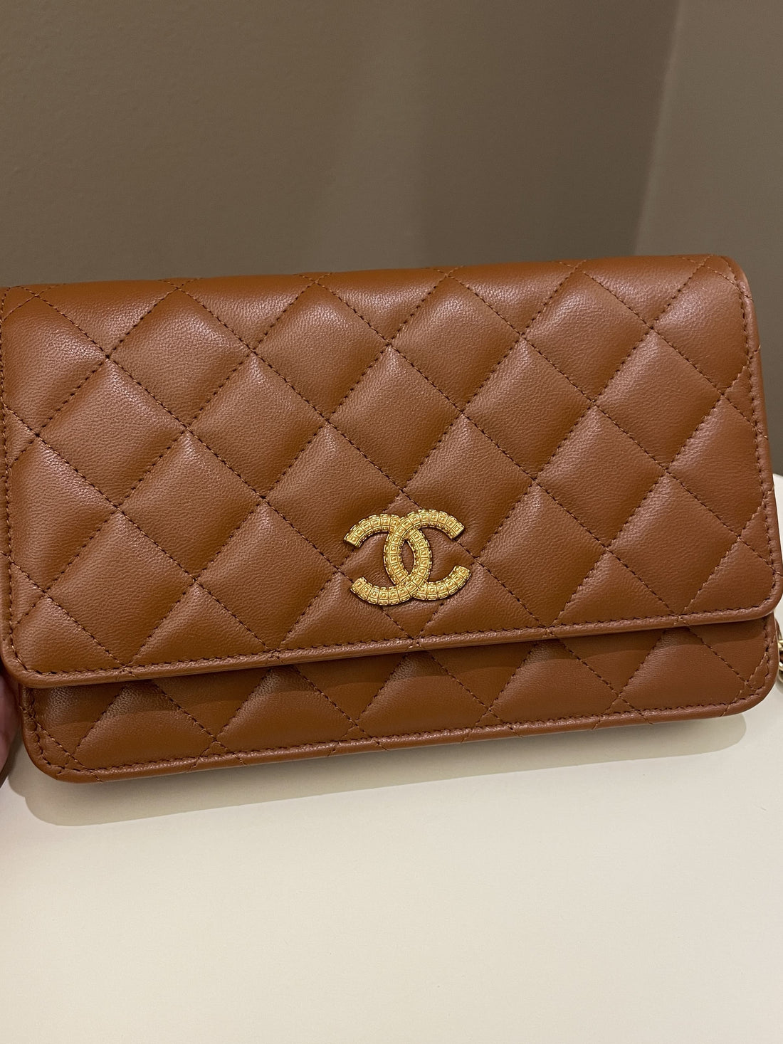 Chanel 23A Cc Quilted Wallet on Chain Tan Brown Stiff Lambskin