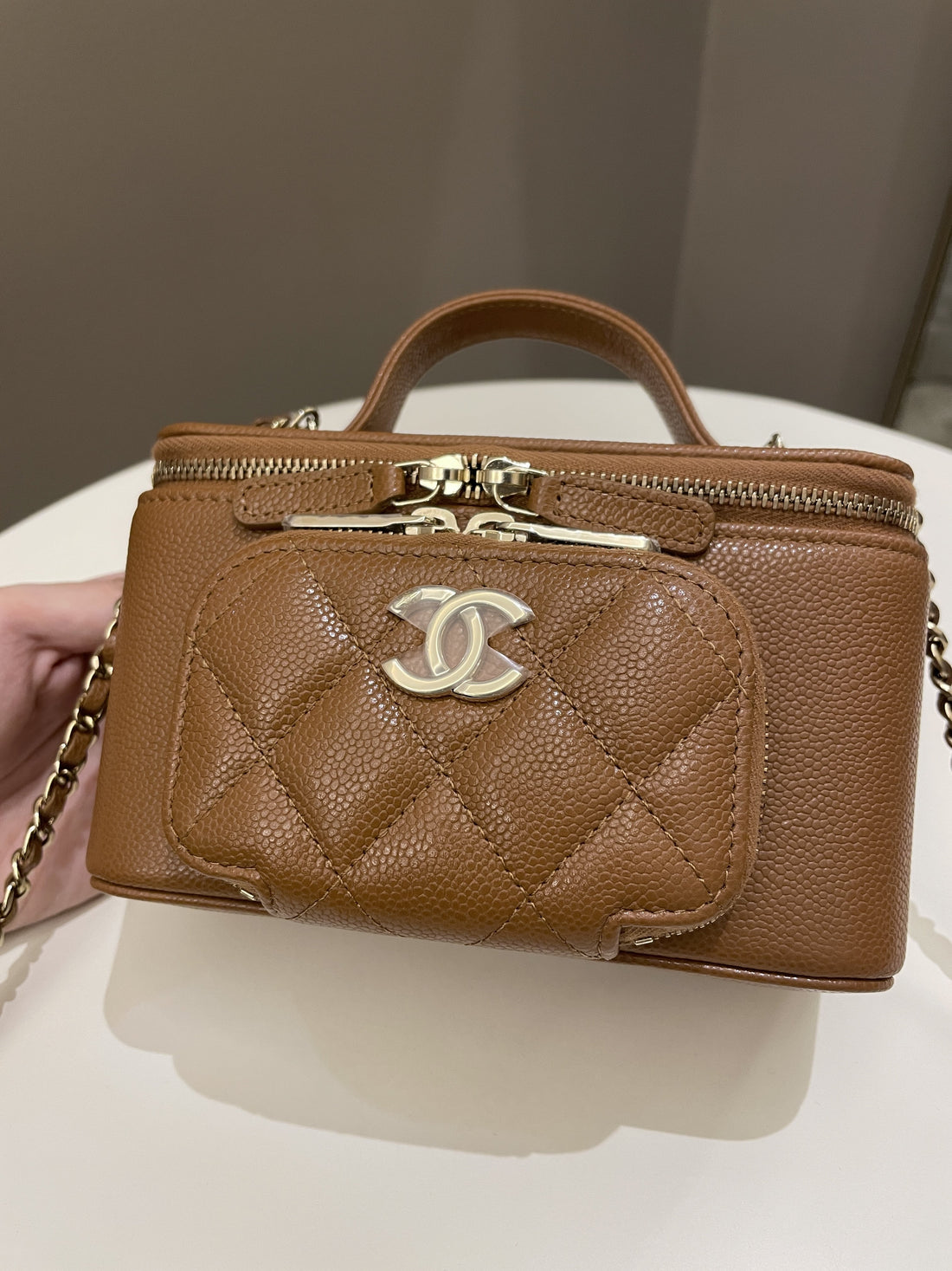Chanel 23P Business Affinity Top Handle Vanity Rectangular Tan Caviar