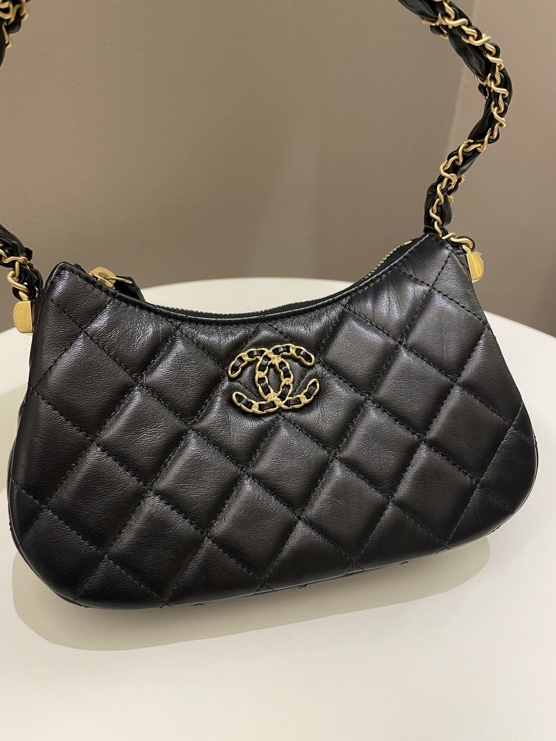 Chanel 23K Hobo BagBlack Calfskin AGHWSize 21 x 11 x 5 cmStrap drop 20 cmMicrochip...