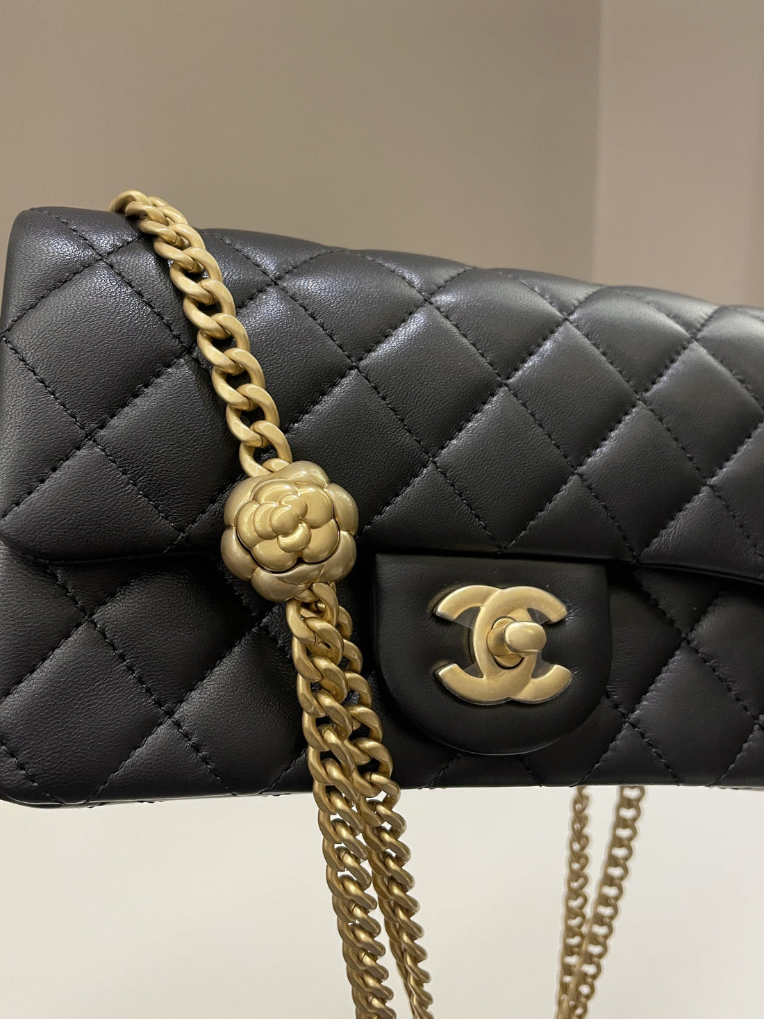 Chanel 23S Camilla Crush Quilted Mini Rectangular Black Stiff Lambskin