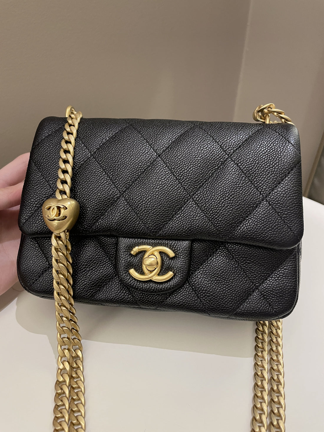 Chanel 23P Sweet Heart Mini FlapCandy Pink Caviar AGWHSize 18 x 12 x 5.5 cmAdjustable...
