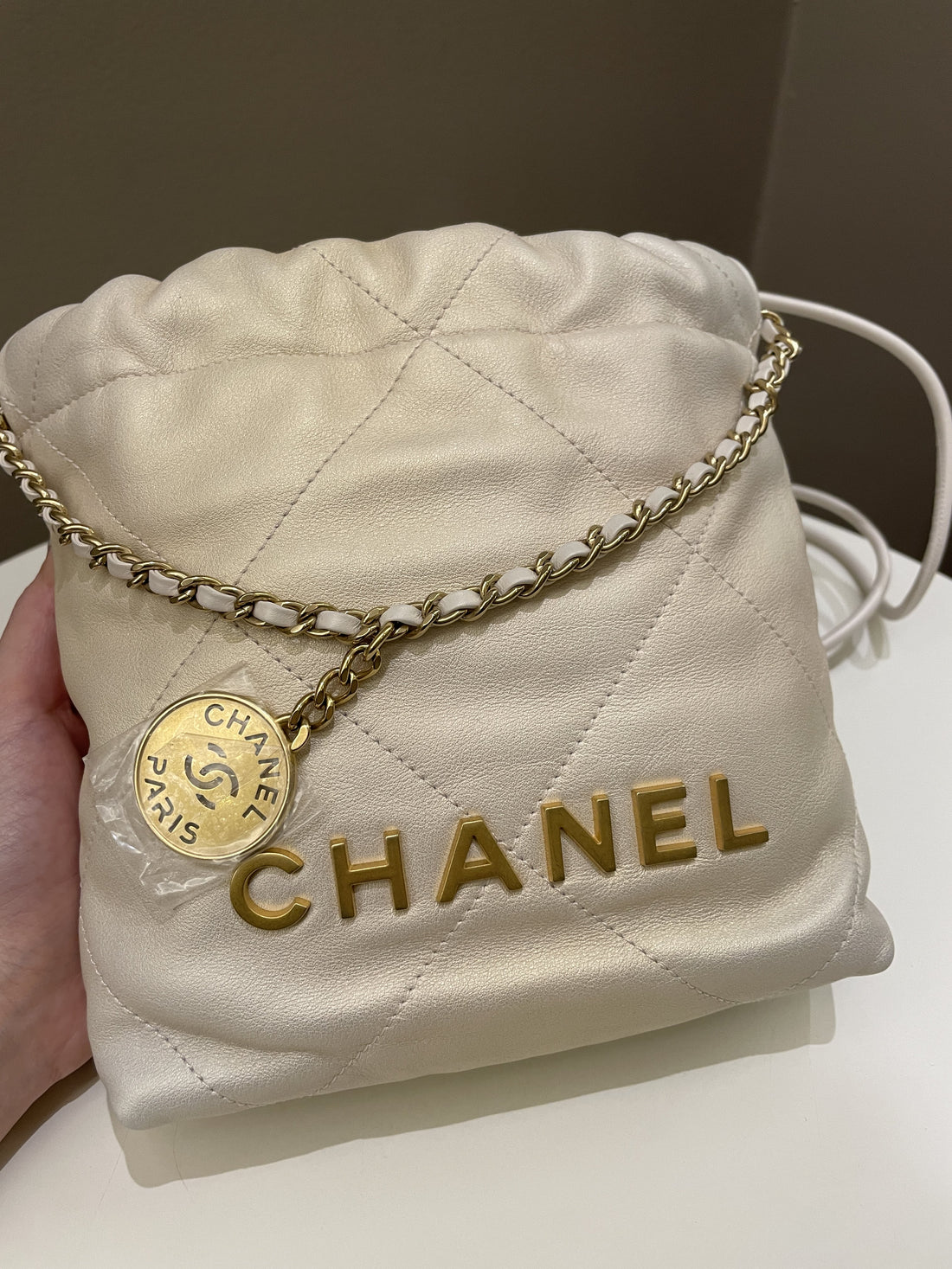 Chanel 23S Mini 22 Iridescent Ecru Calfskin
