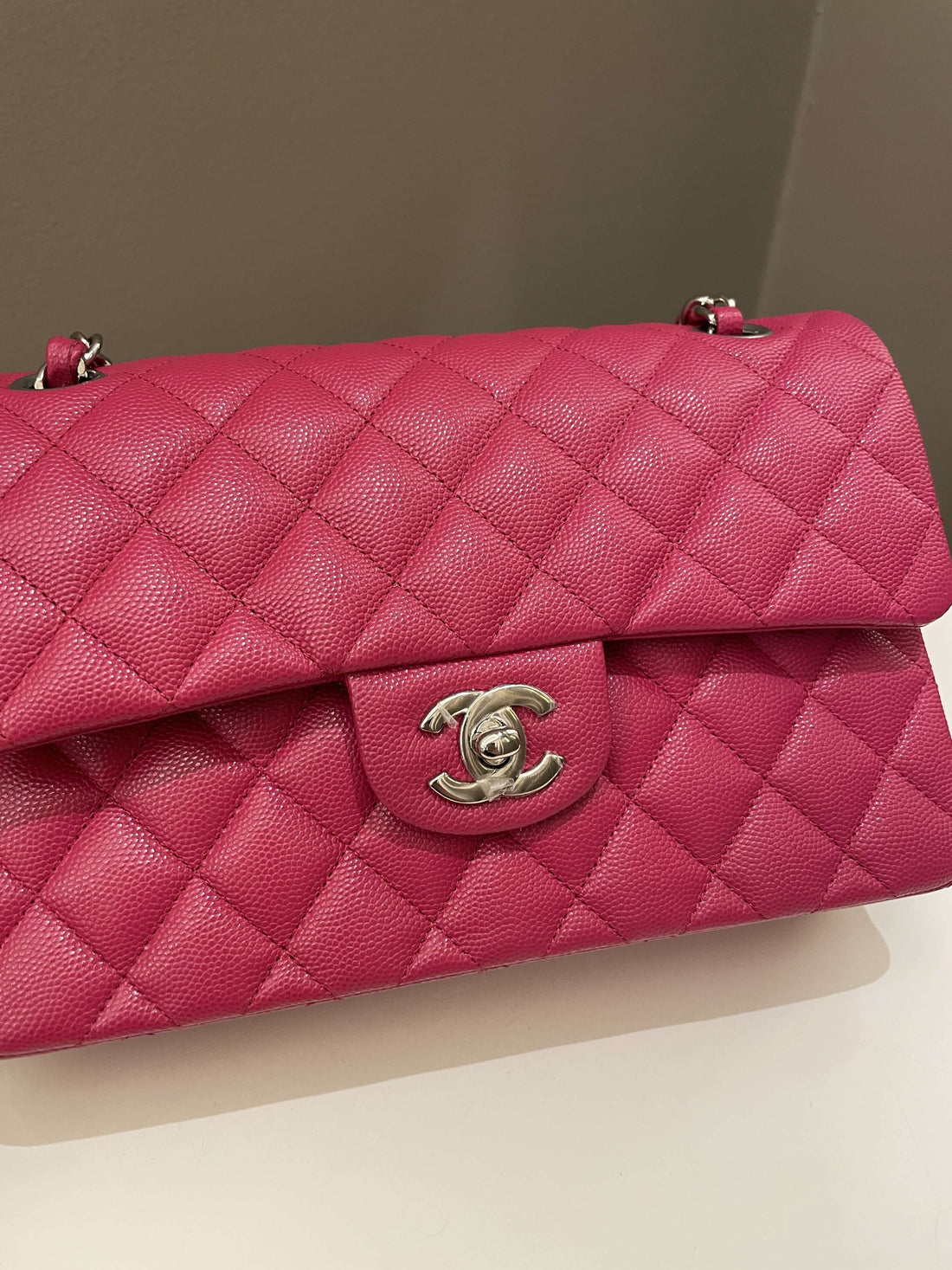 Chanel Classic Quilted Small Double FlapRose Fuschia Caviar SHWSmall 23 x 14 x 6.5 cmSingle...