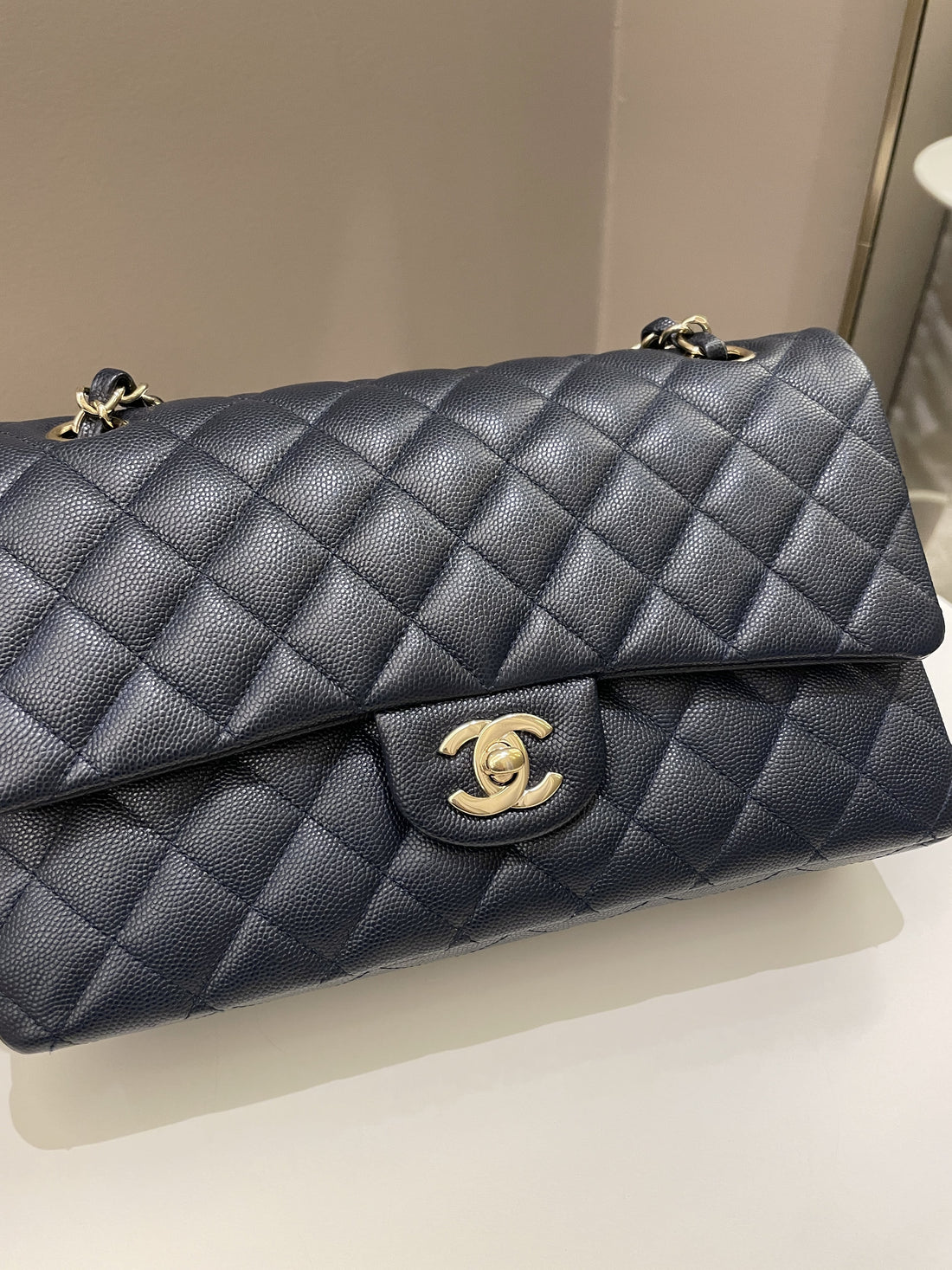 Chanel Classic Quilted Medium Double FlapMidnight Blue Caviar LGHWMedium 25 x 15 x 7 cmSingle...