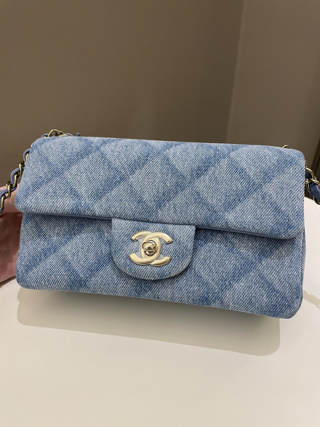 Chanel Classic Quilted Mini RectangularBlue Denim LGHWSize 20 x 12.5 x 6.5 cmChain drop 53...