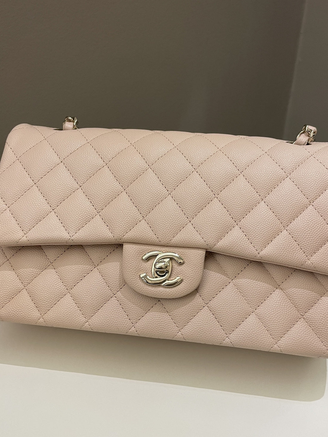Chanel Classic Quilted Medium Double FlapBeige Claire Caviar LGHWMedium 25 x 15 x 7 cmSingle...