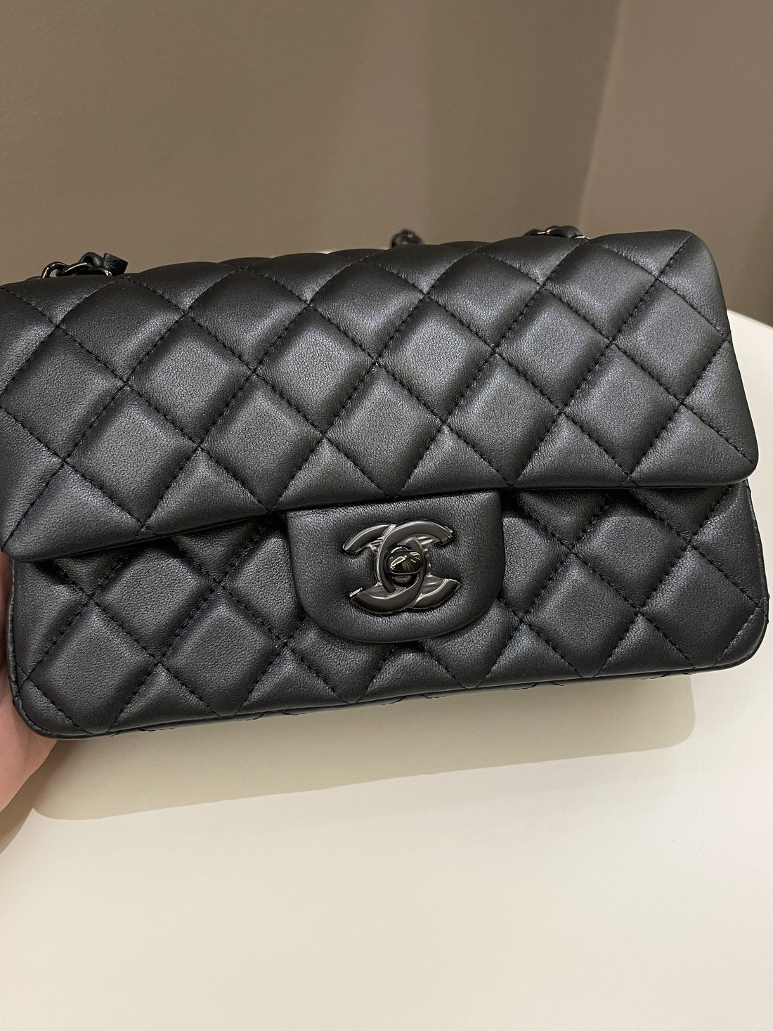 Chanel 23B Classic Quilted So Black Mini Rectangular Black Lambskin