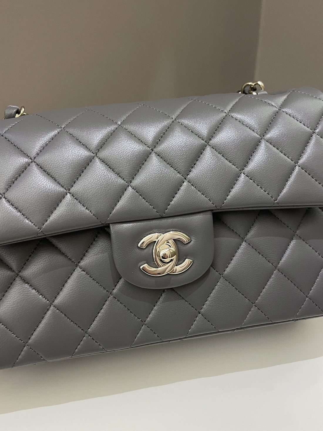 Chanel 22A Classic Quilted Small Double FlapDark Grey Lambskin LGHWSmall 23 x 14 x 6.5...