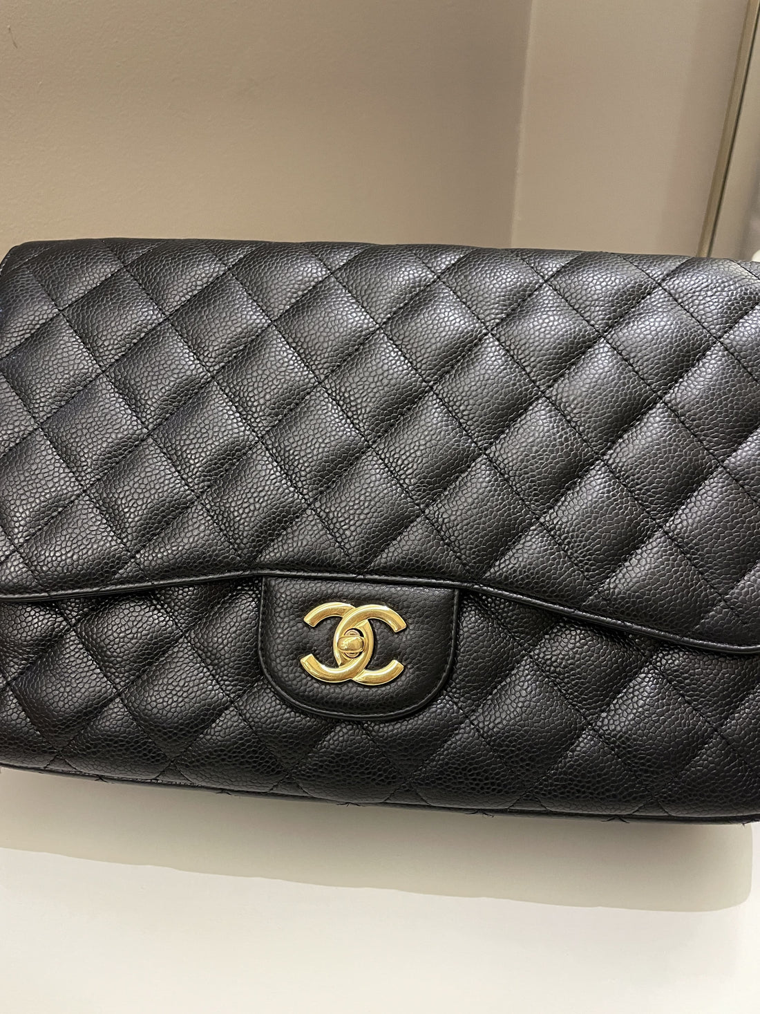 Chanel Classic Quilted Jumbo Single FlapBlack Caviar GHWJumbo 30 x 20 x 9 cmSingle drop...