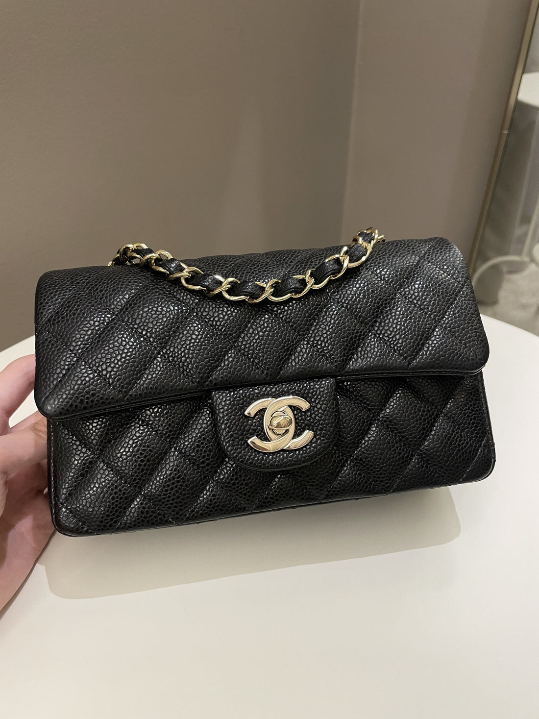 Chanel Classic Quilted Mini RectangularBlack Caviar GHWSize 20 x 12.5 x 6.5 cmChain drop 53...