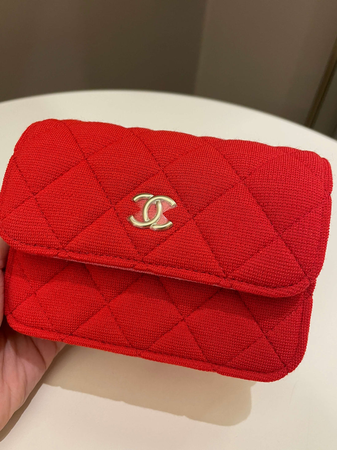 Chanel 23C Quilted VIP Clutch On Chain Red Pink Jersey