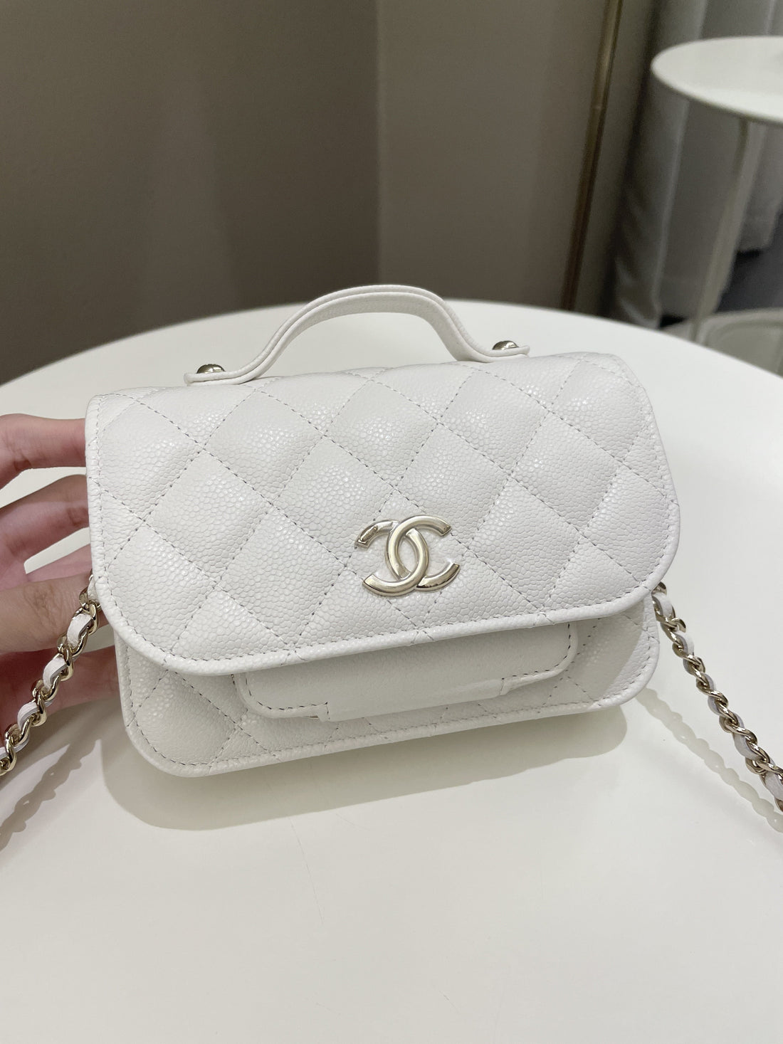 Chanel Business Affinity Clutch On ChainWhite Caviar LGHWSize 15.5 x 10.5 x 5.5 cmChain drop...