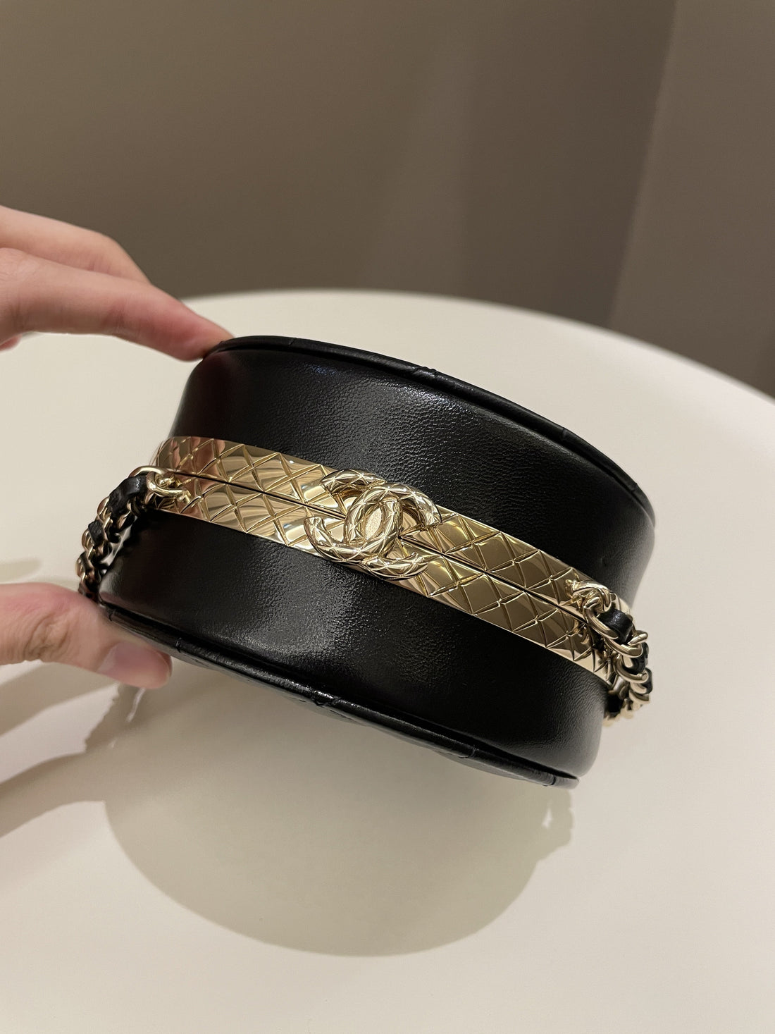 Chanel Quilted Round Evening Chain ClutchBlack Lambskin GHWSize 11.5 cmChain drop 54 cmMicrochip stickerOct 20229.7/10...