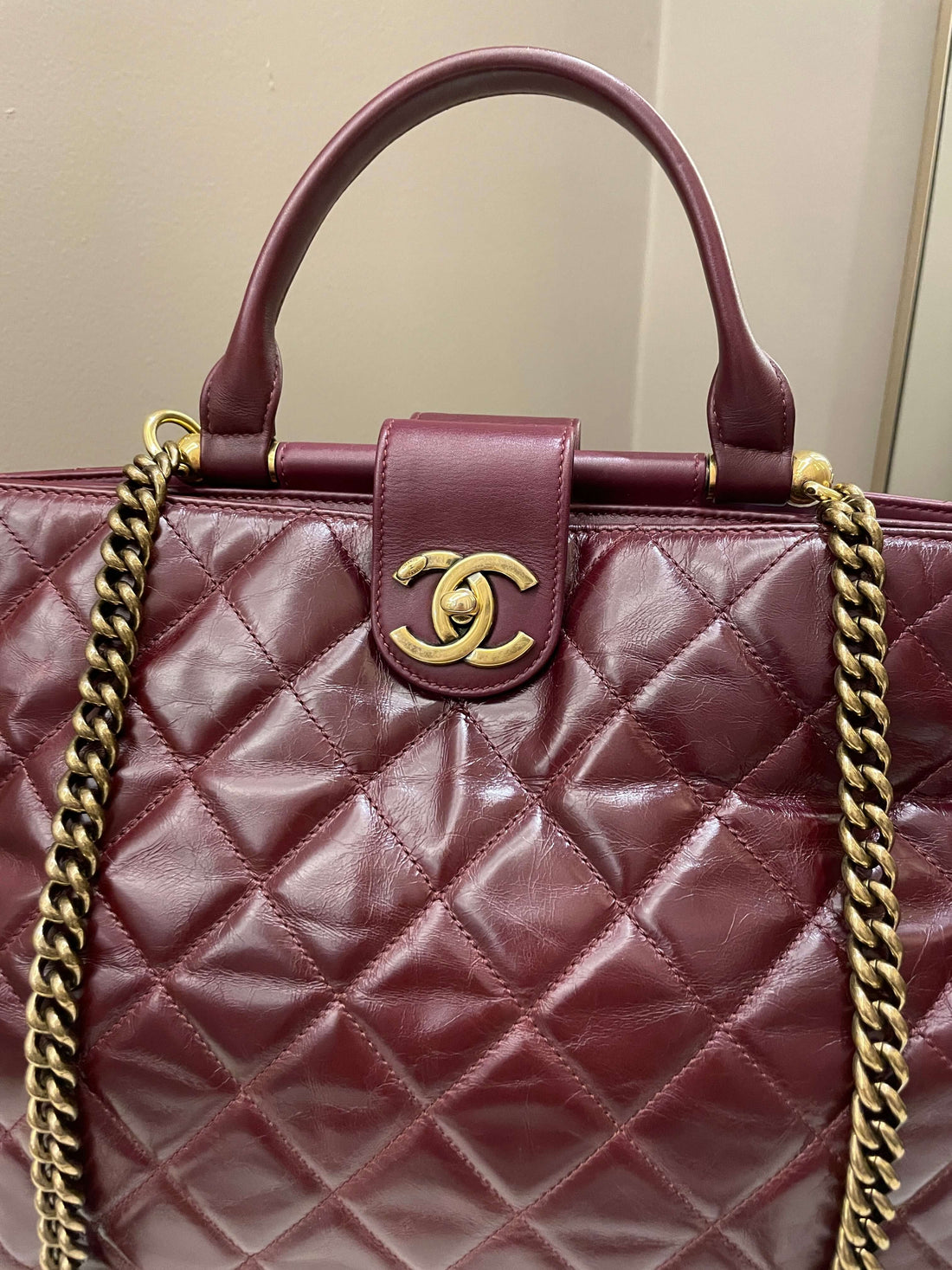 Chanel Quilted CC Portobello ToteBurgundy Distressed Leather AGHWSize 32 x 23 x 12 cmChain drop...