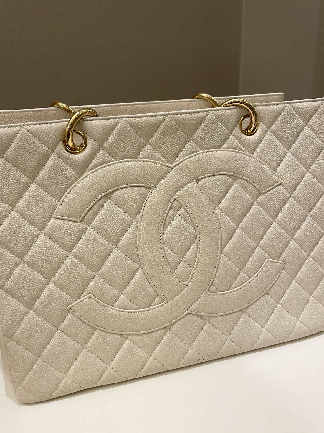 Chanel Vintage Cc Timeless Tote Ivory Cream Caviar