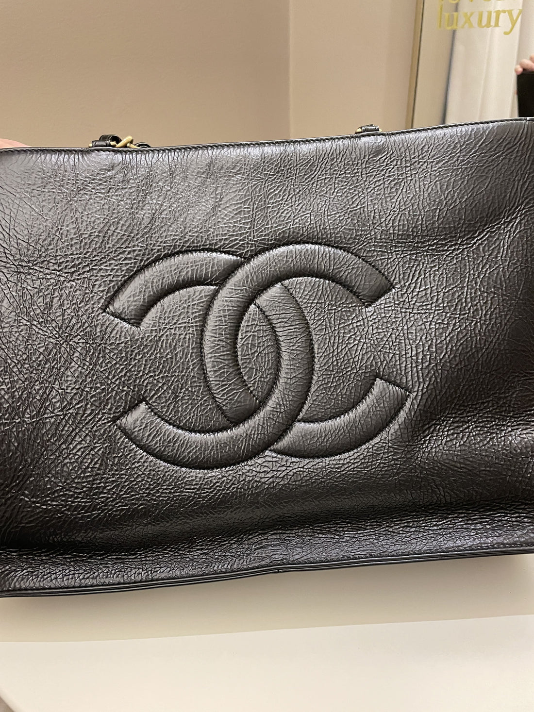Chanel Timeless CC Shoulder Tote Black Aged Calfskin