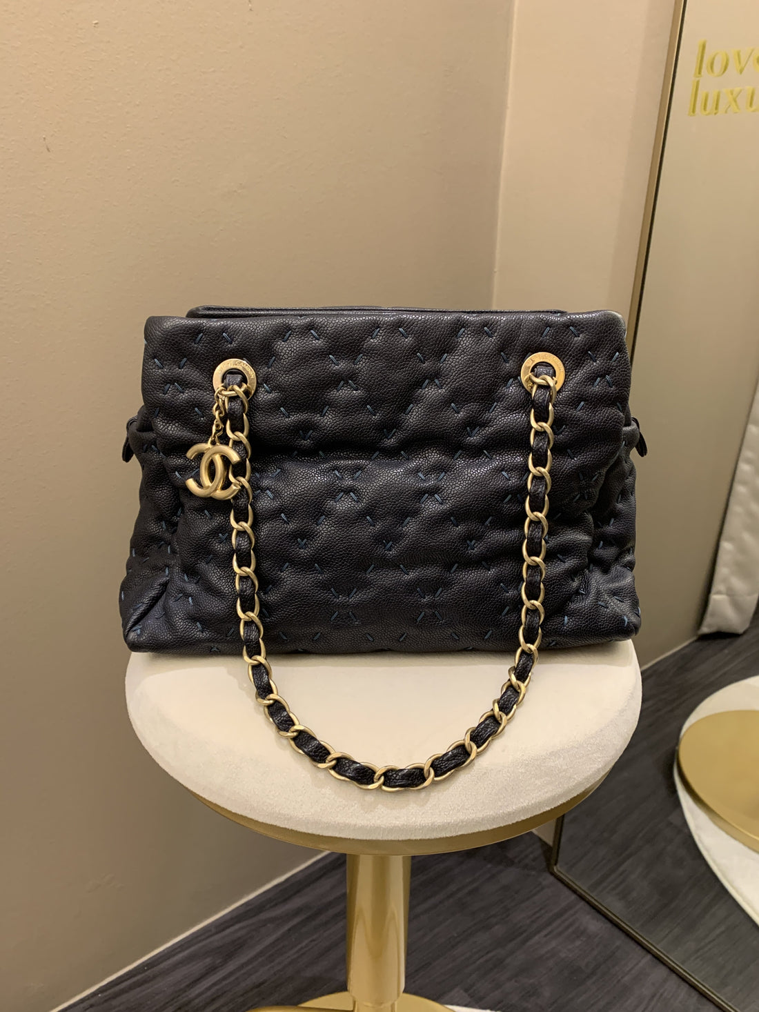 Chanel Quilted Leather Wild Stitch Shoulder ToteDark Navy Antique GHW31 x 19 x 14 cmShoulder...