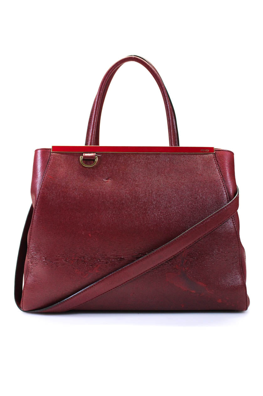 Fendi Womens Double Handle Logo Framed Leather 2Jours Tote Handbag Red