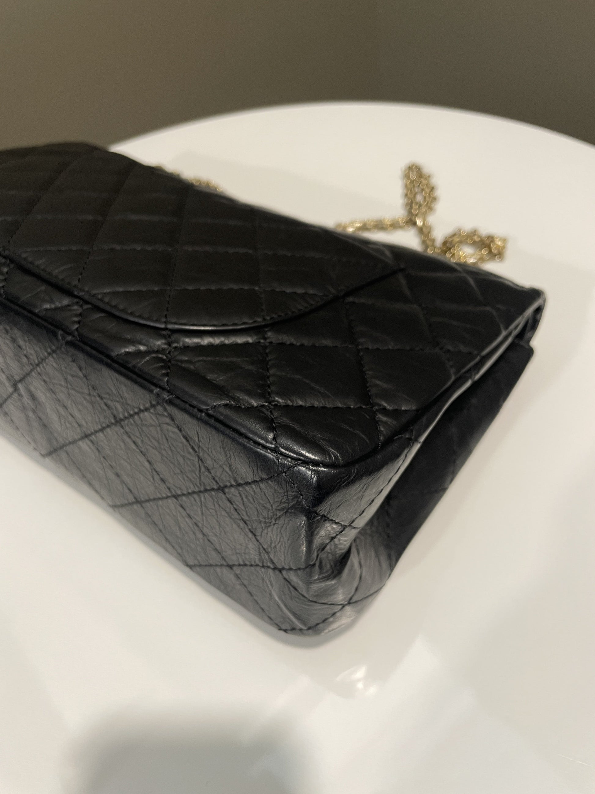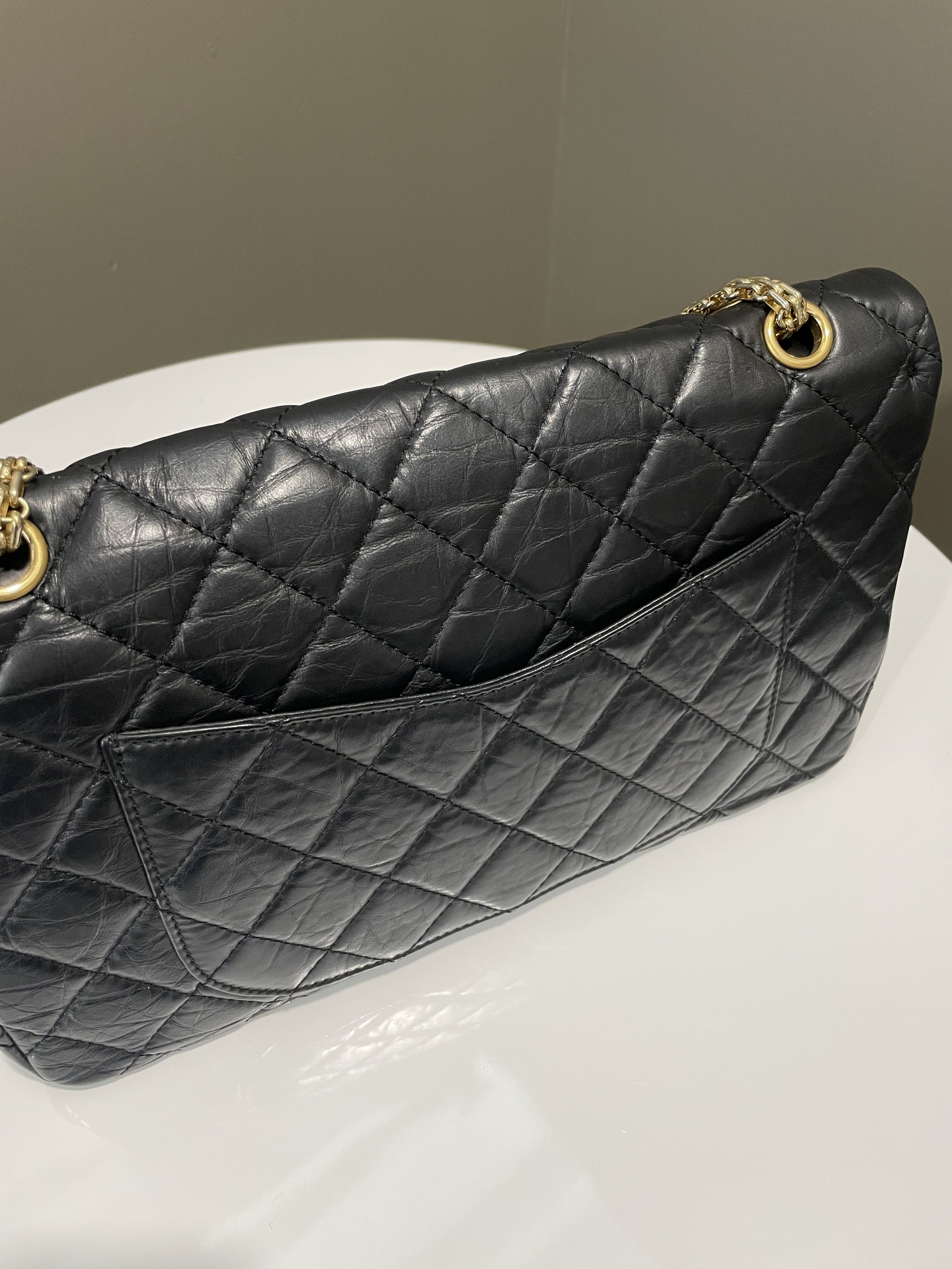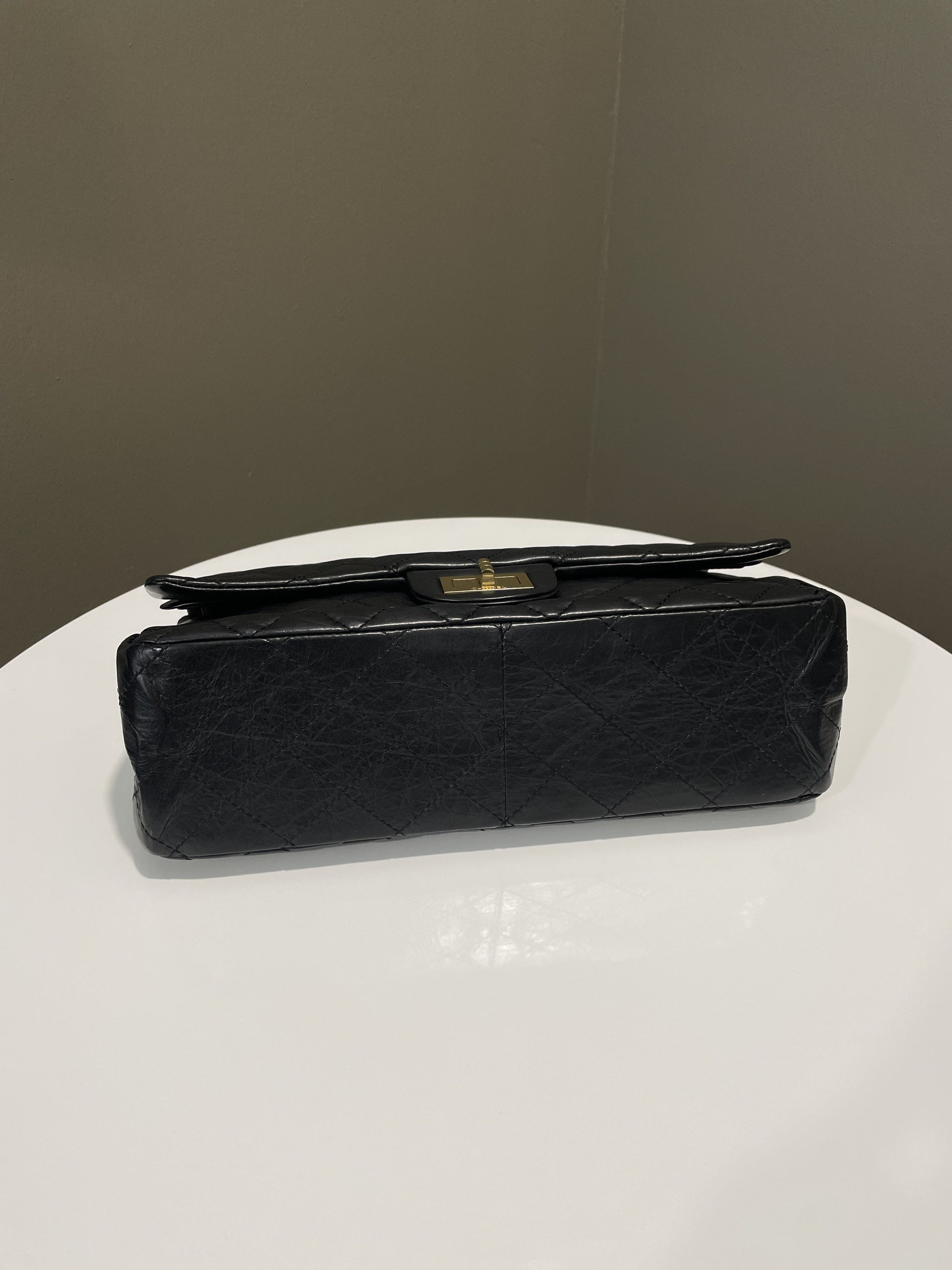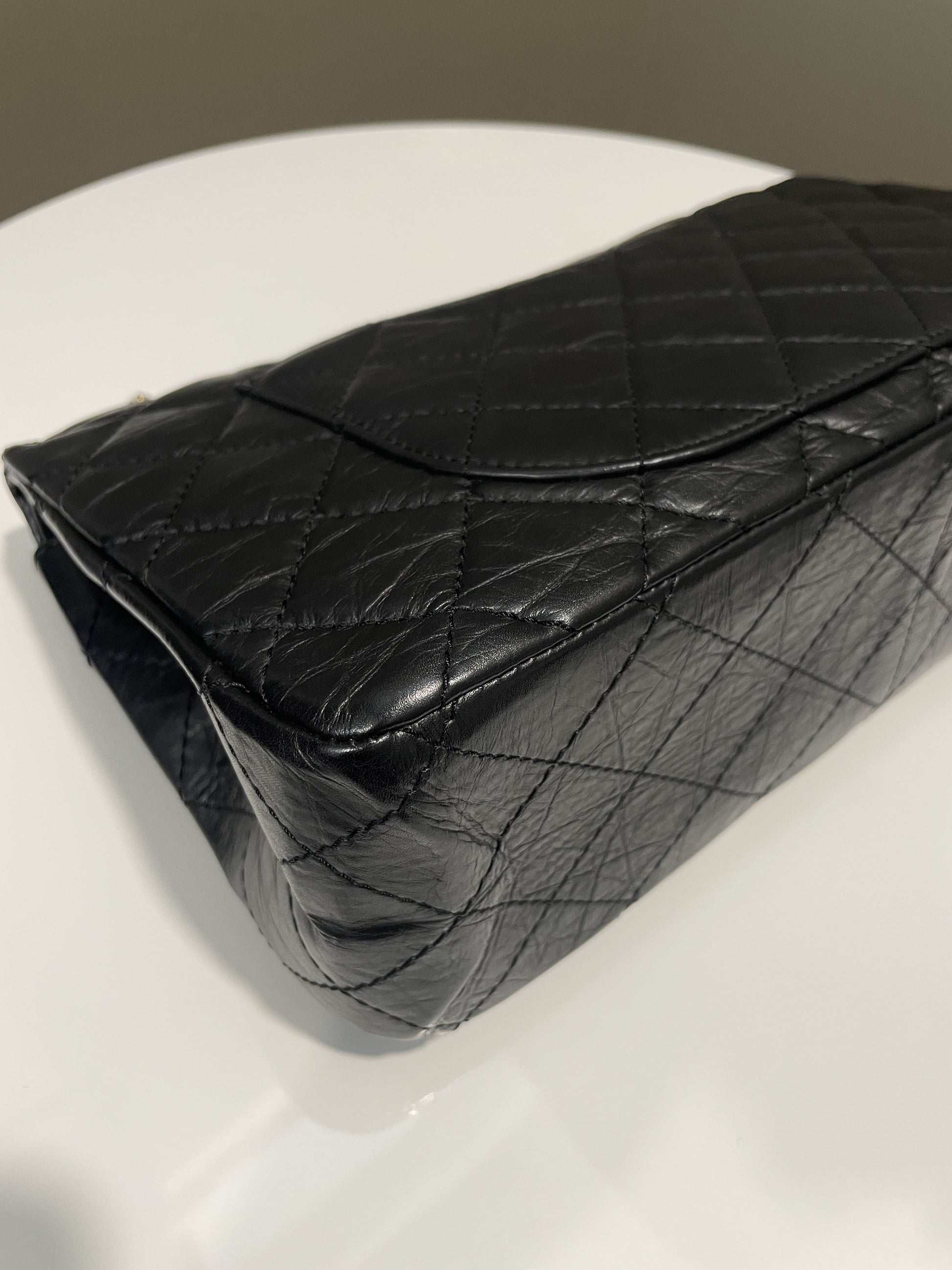Chanel 2.55 227 Quilted Reissue Double Flap Black Aged Calfskin