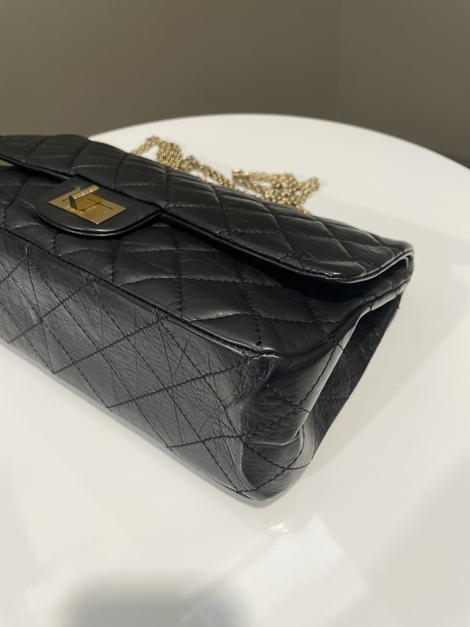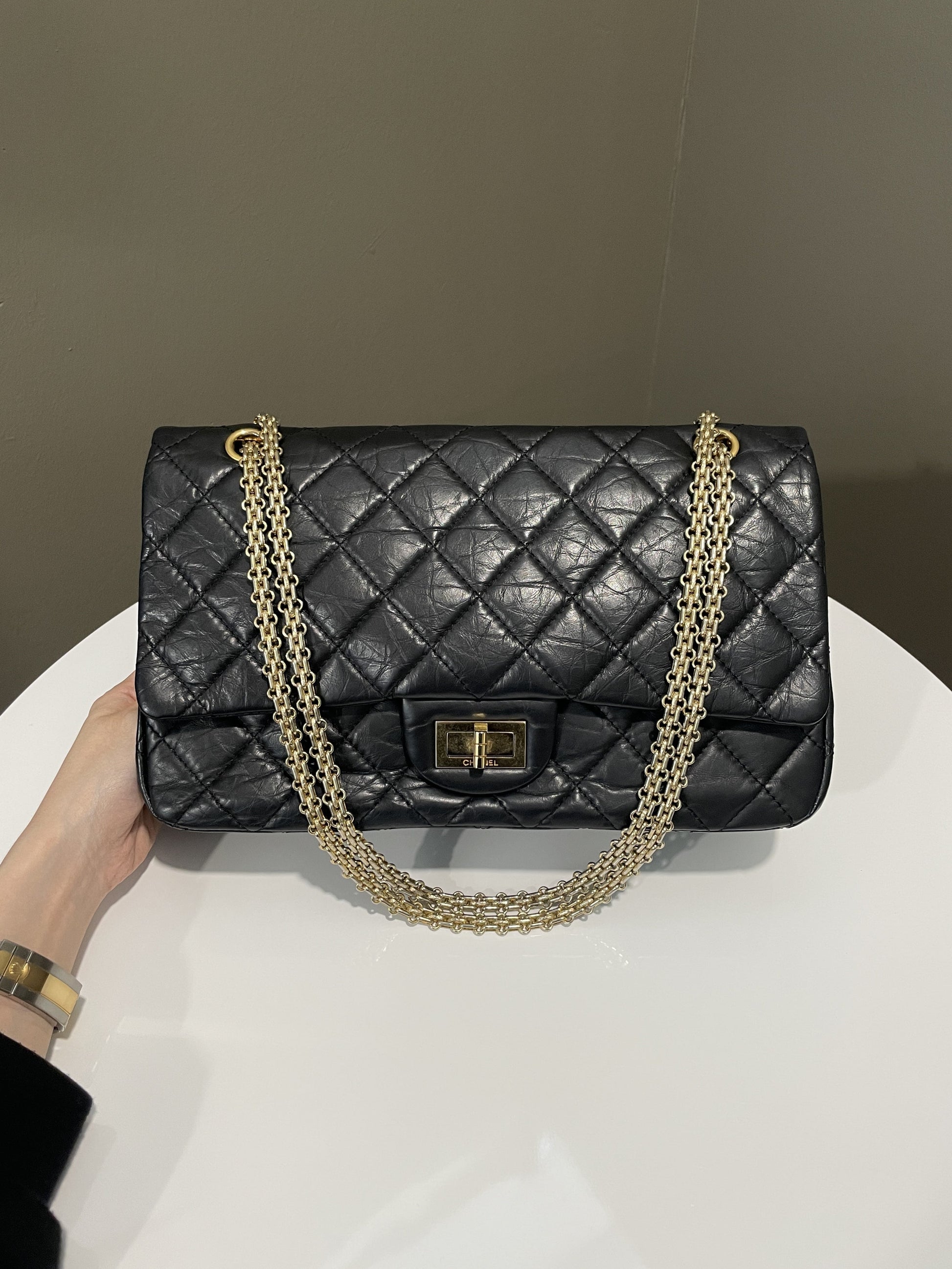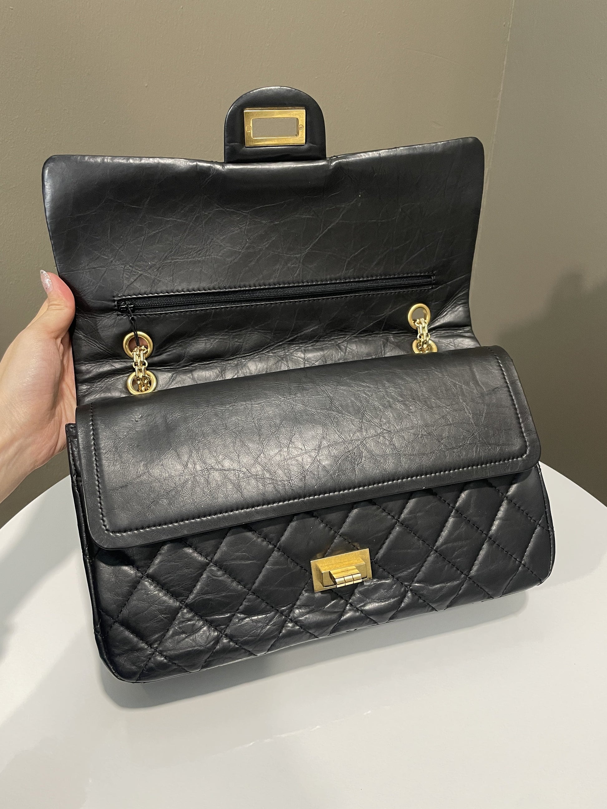 Chanel 2.55 227 Quilted Reissue Double Flap Black Aged Calfskin