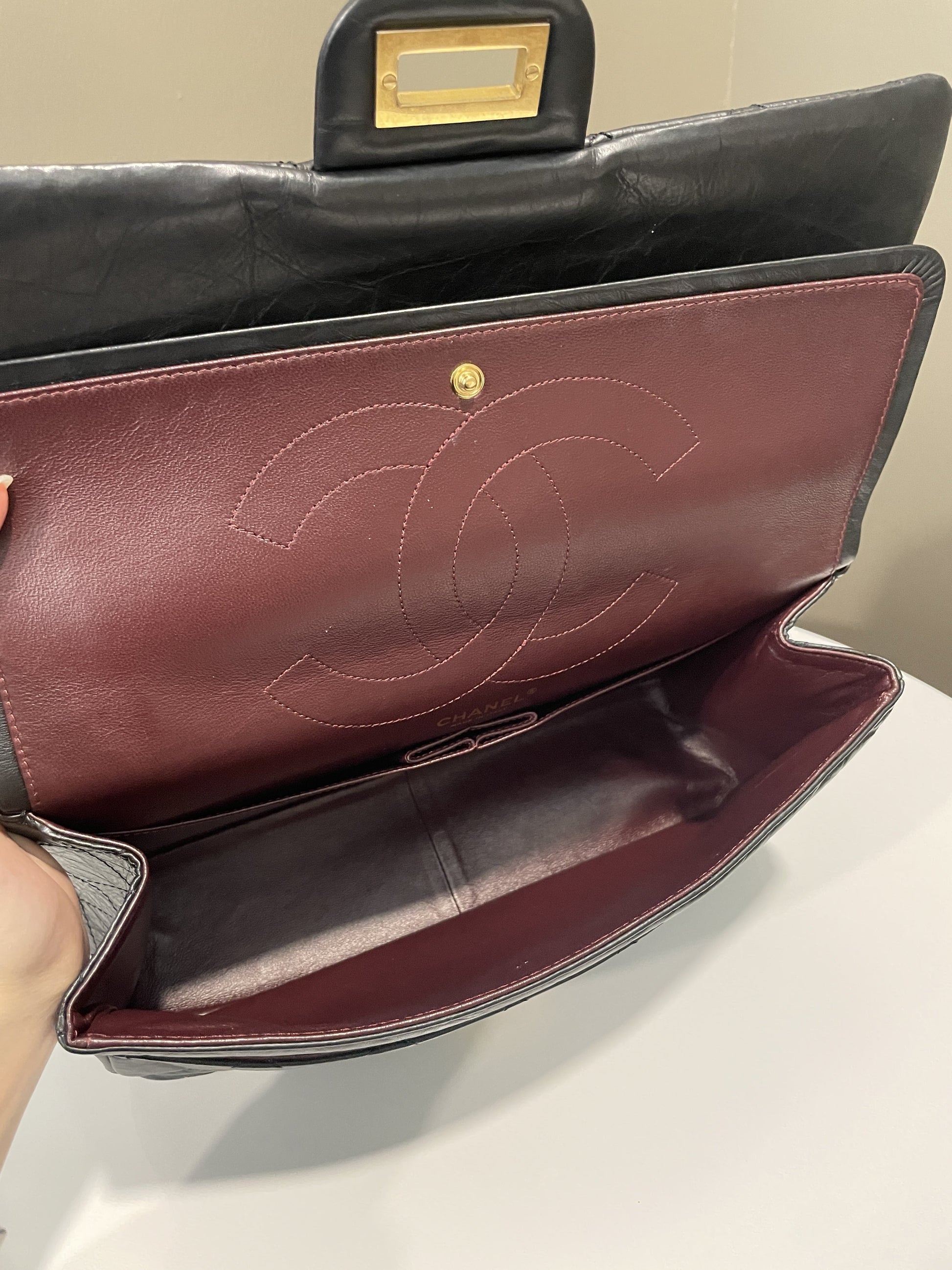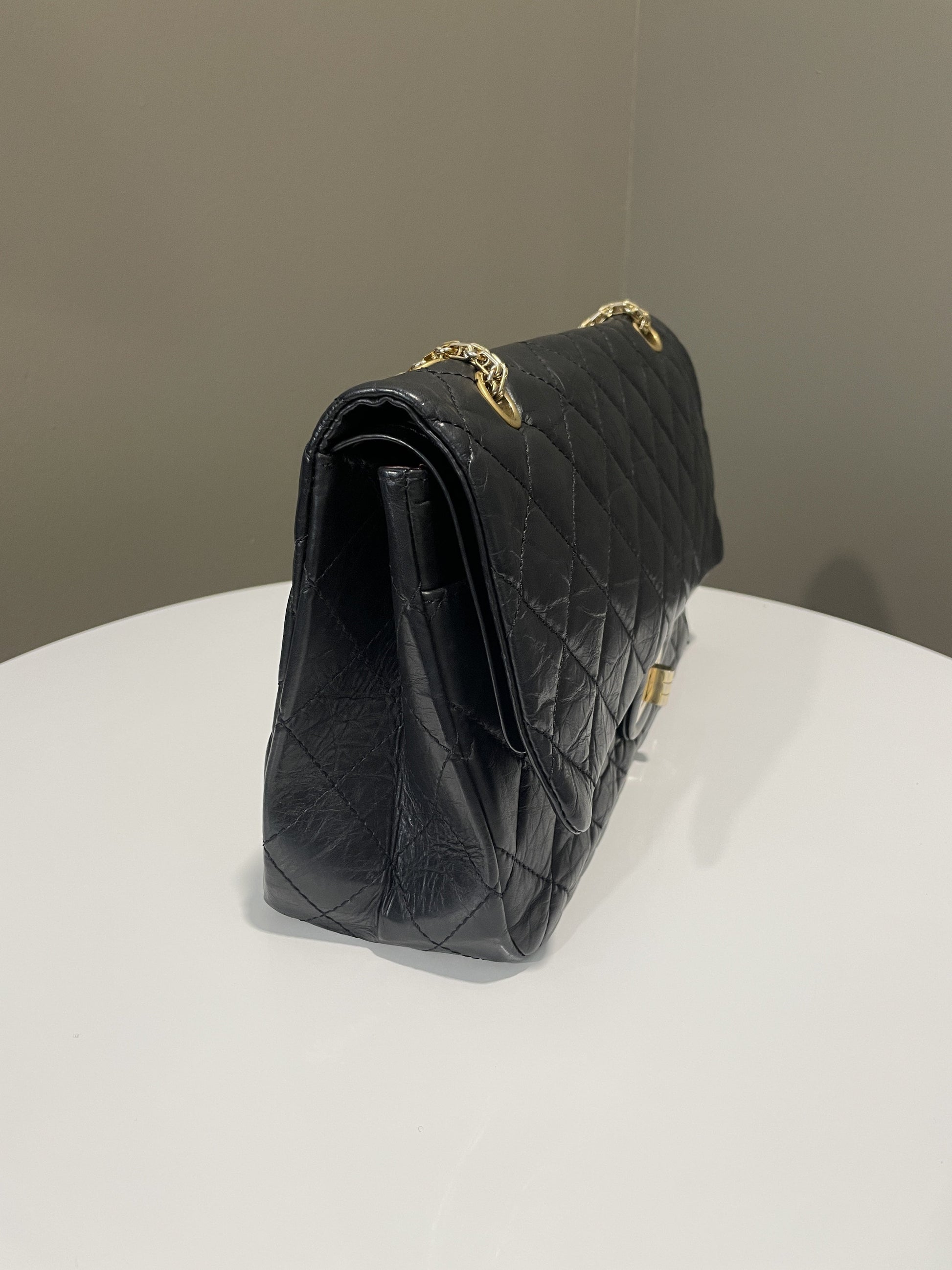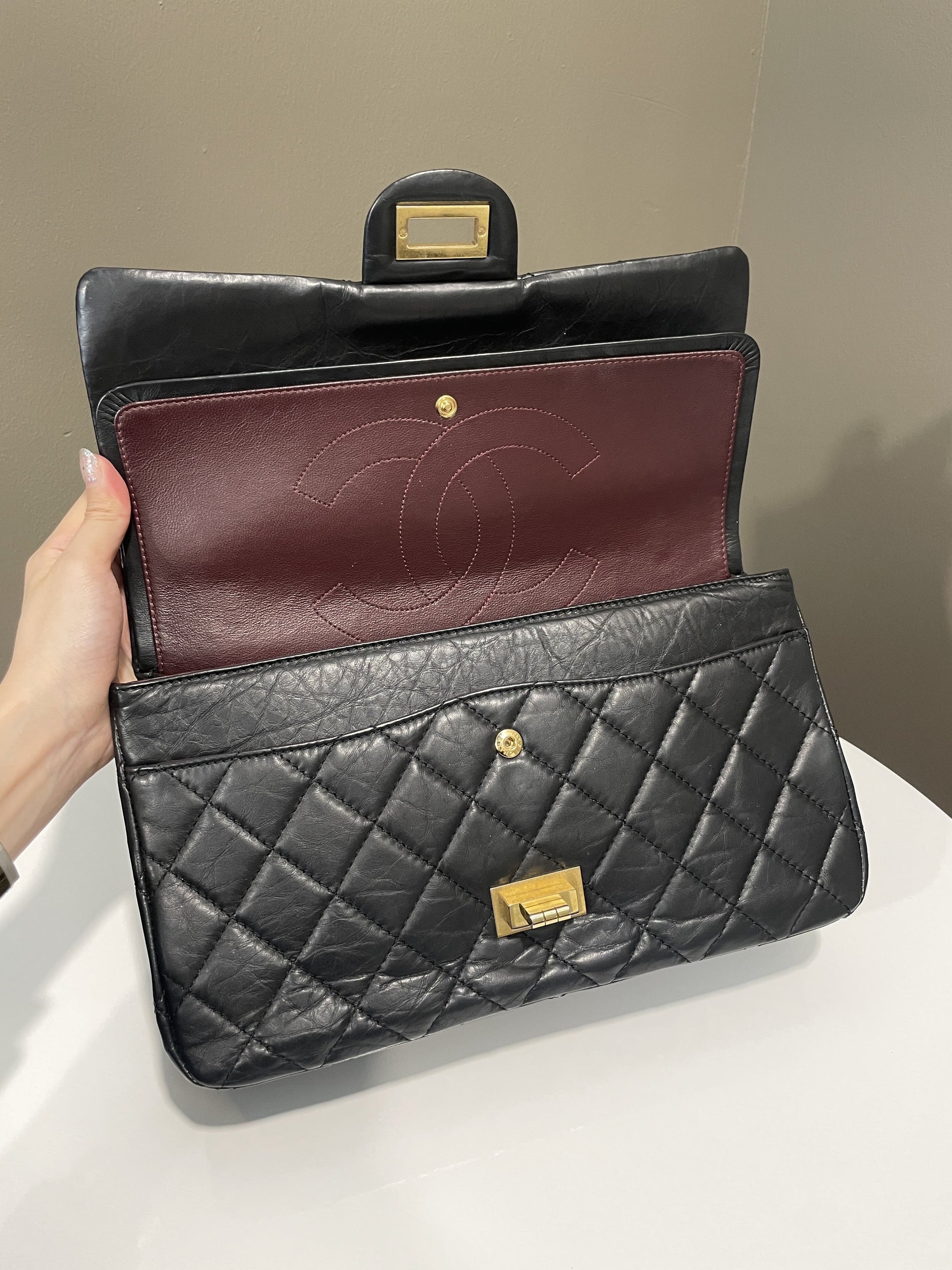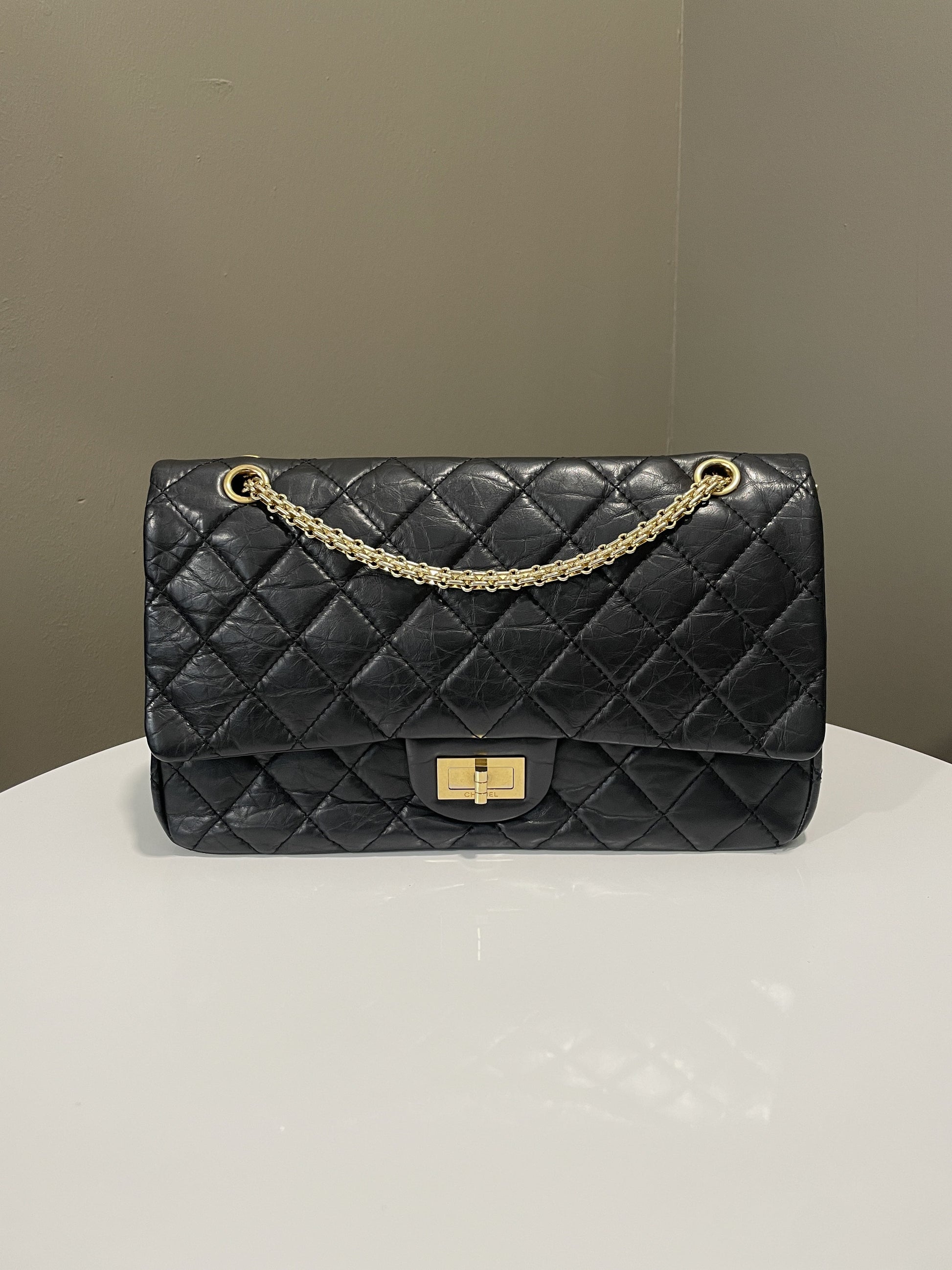 Chanel 2.55 227 Quilted Reissue Double Flap Black Aged Calfskin