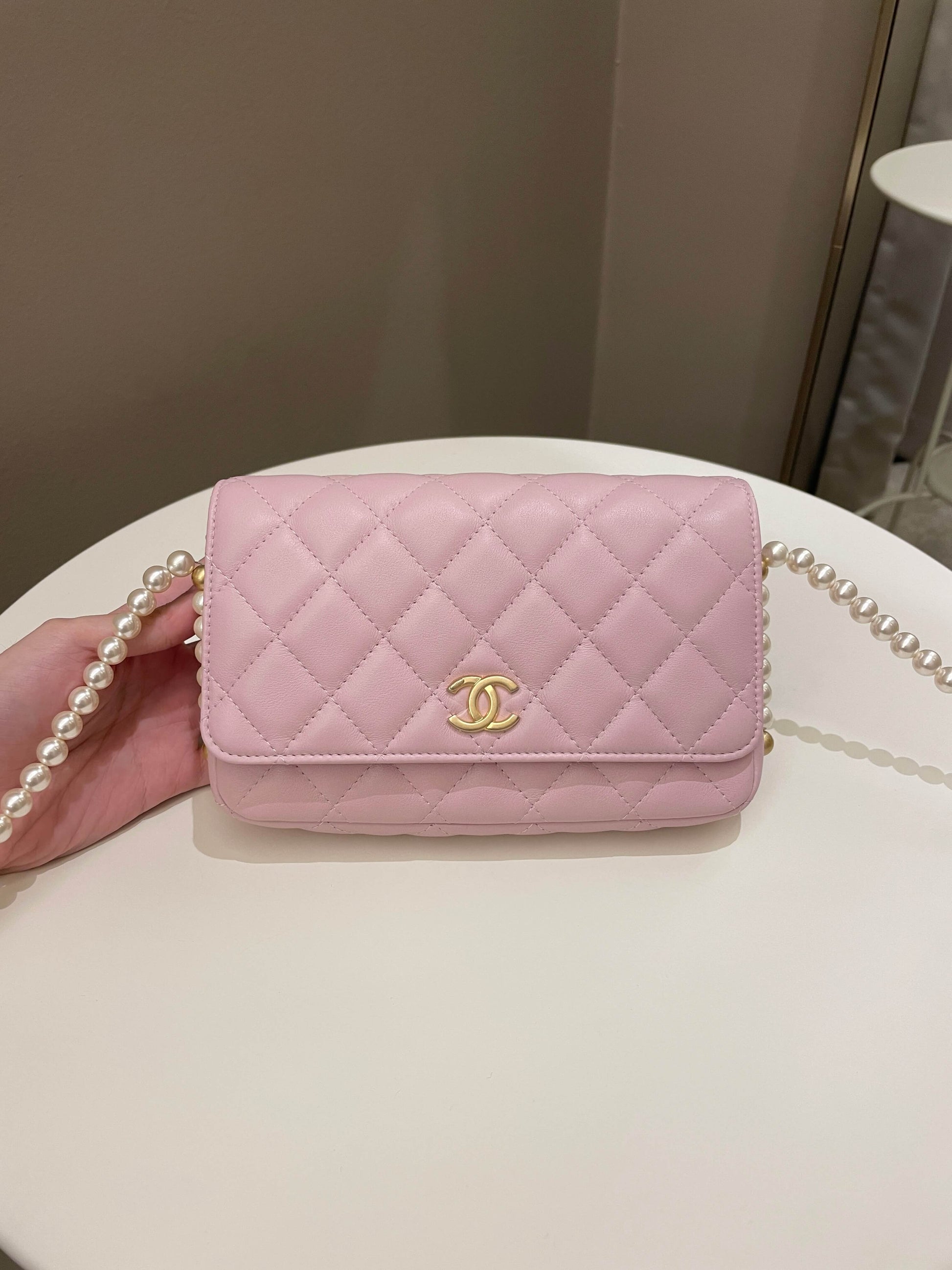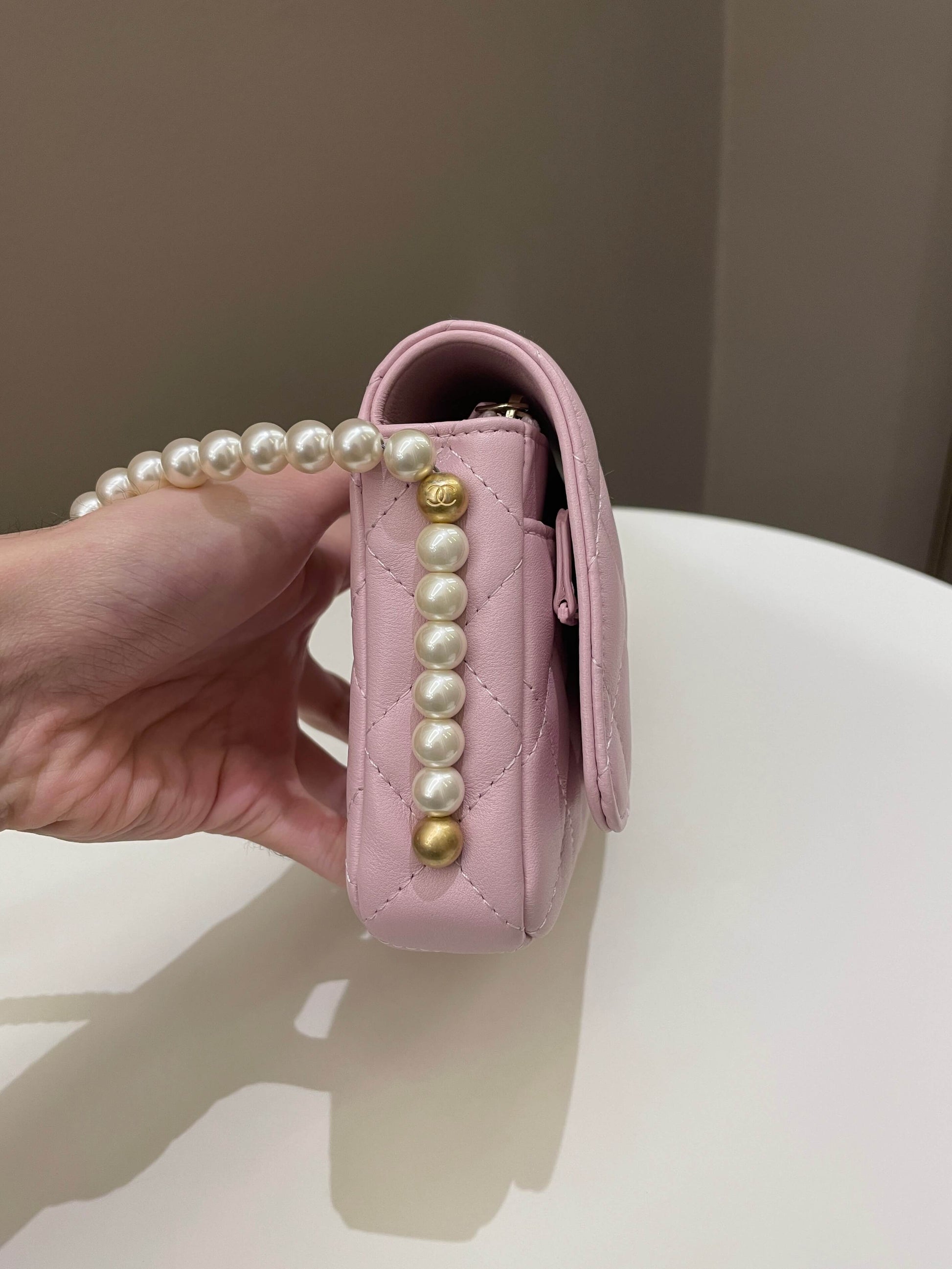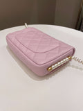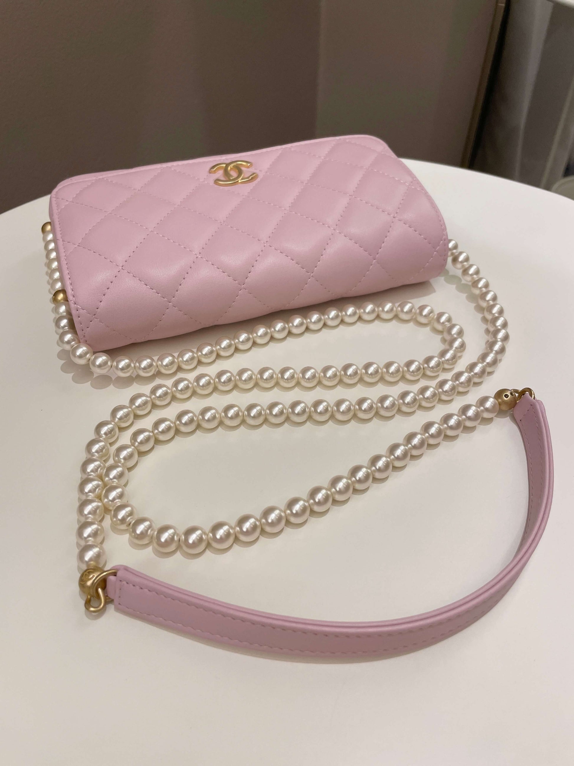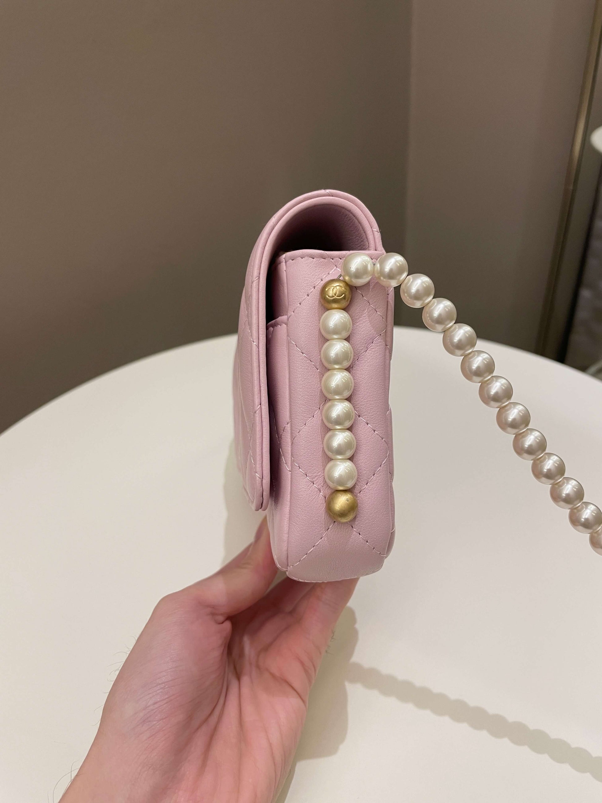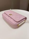 Chanel 21S Quilted Wallet On Chain With Pearl Baby Pink Lambskin
