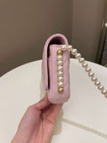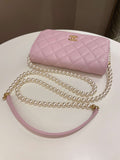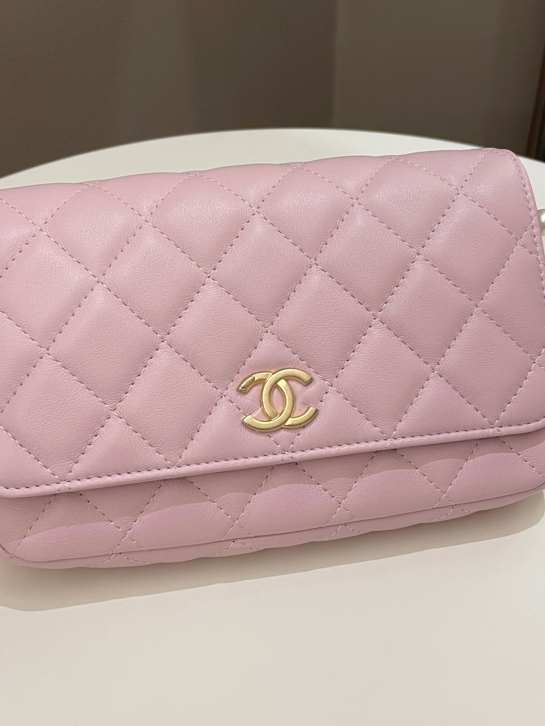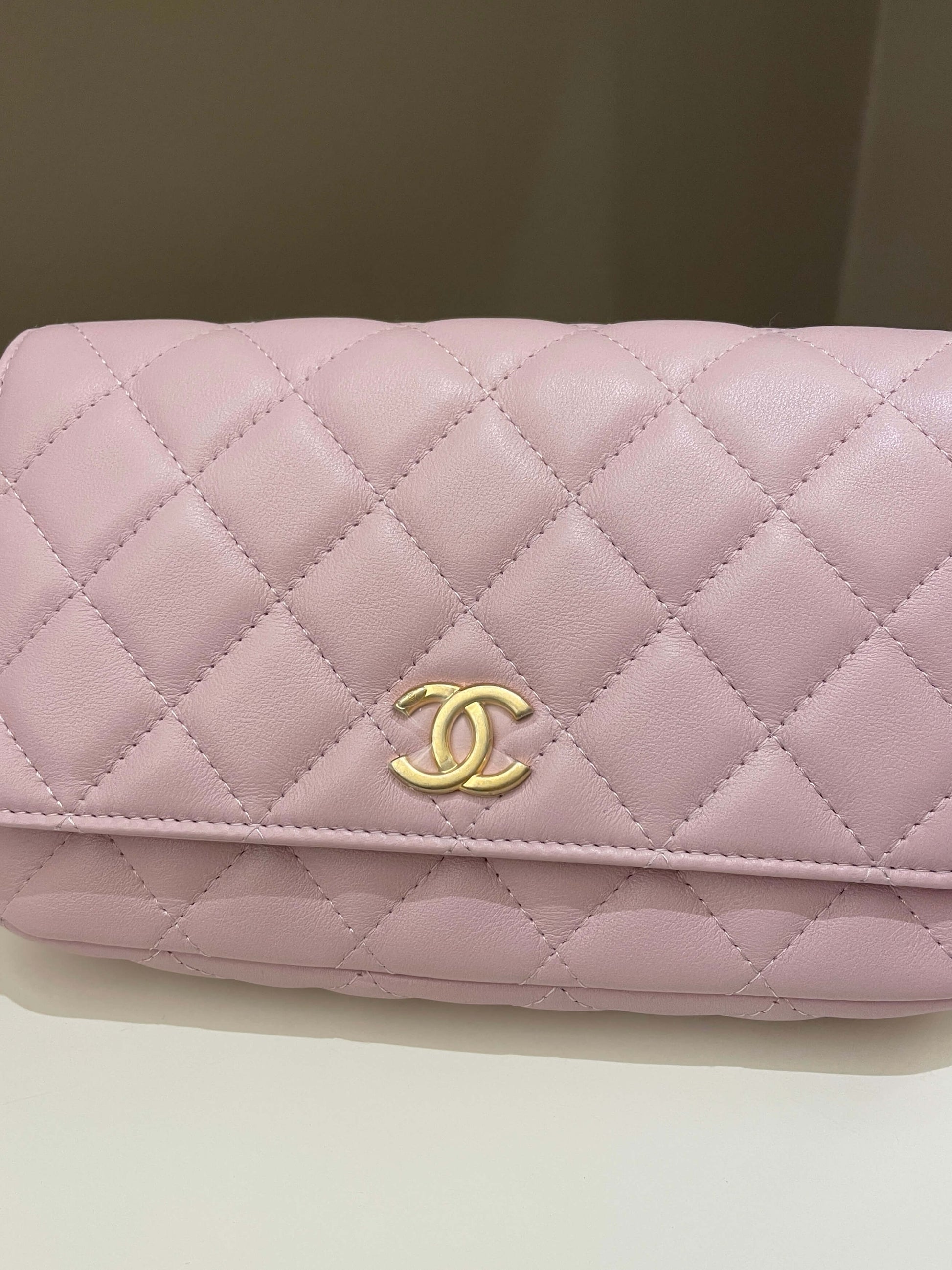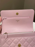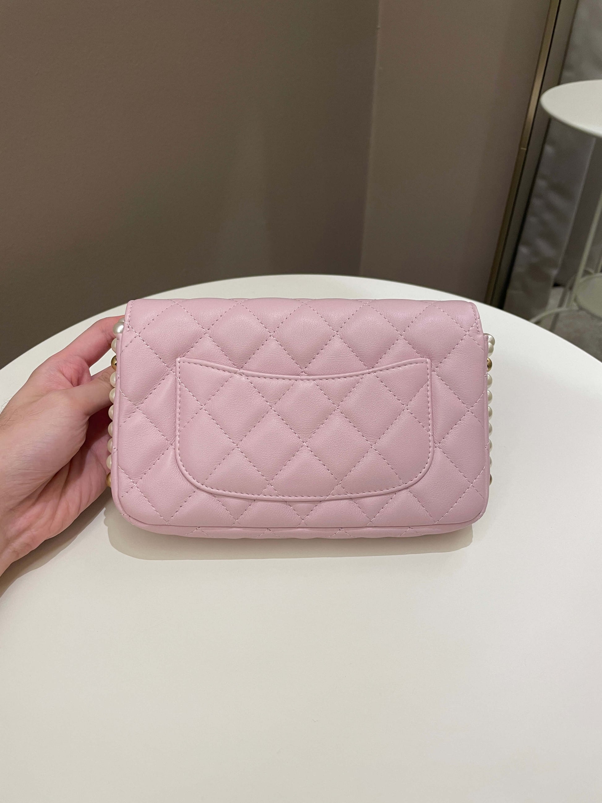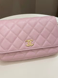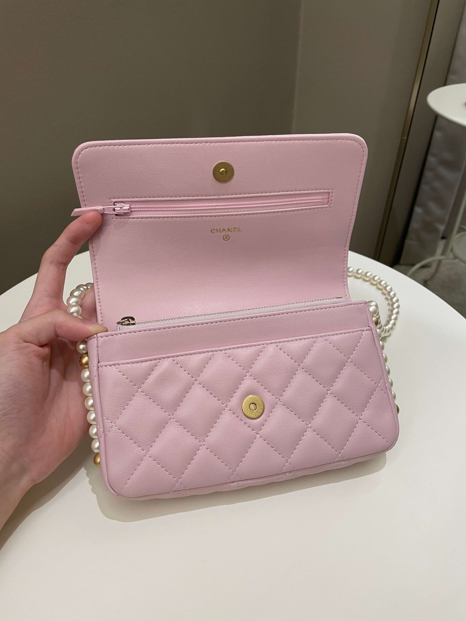 Chanel 21S Quilted Wallet On Chain With Pearl Baby Pink Lambskin