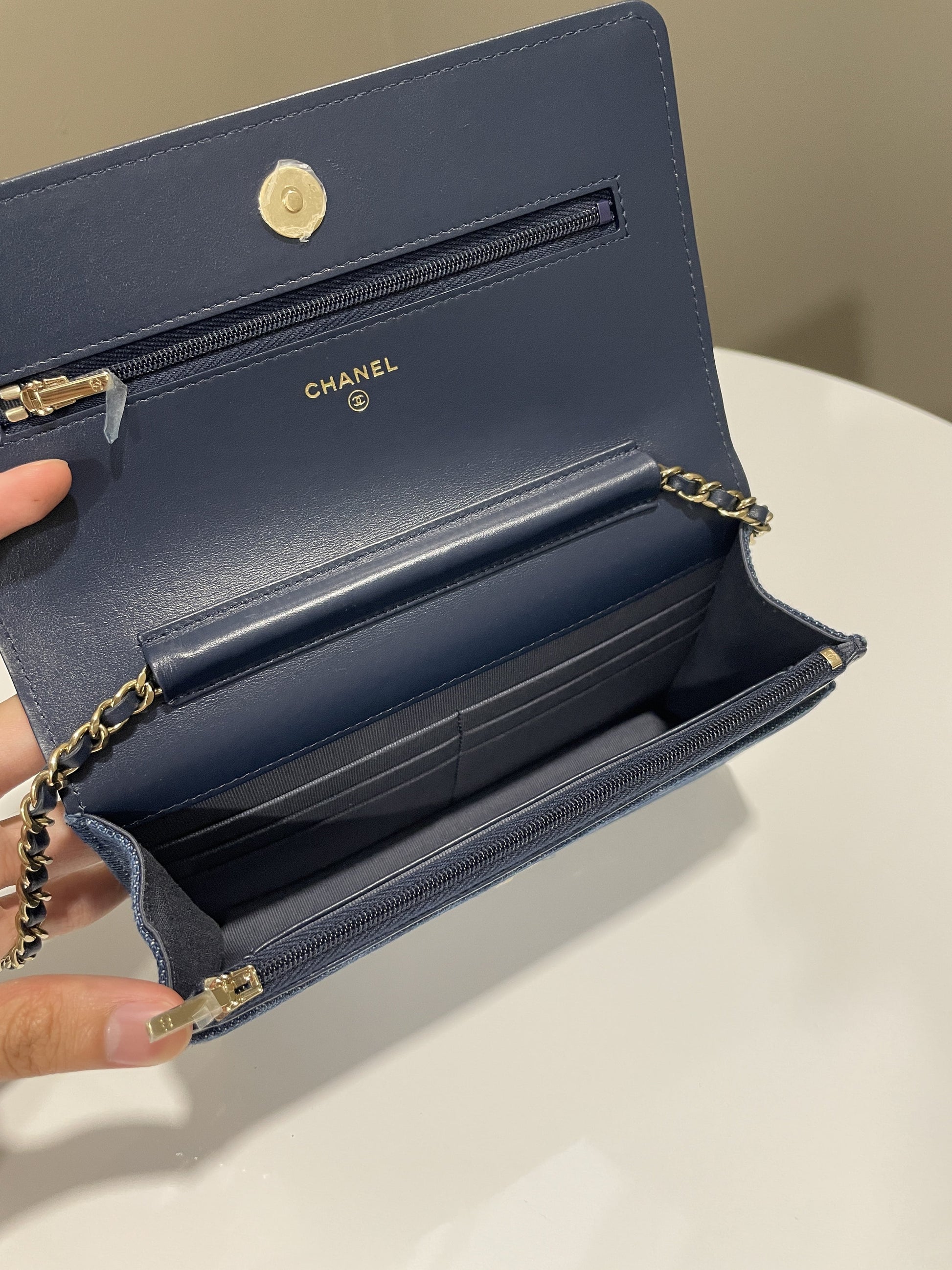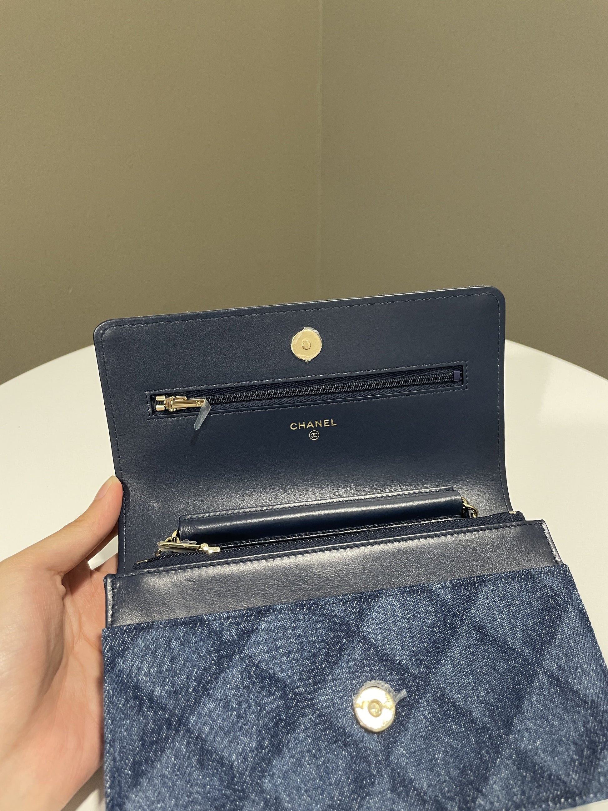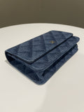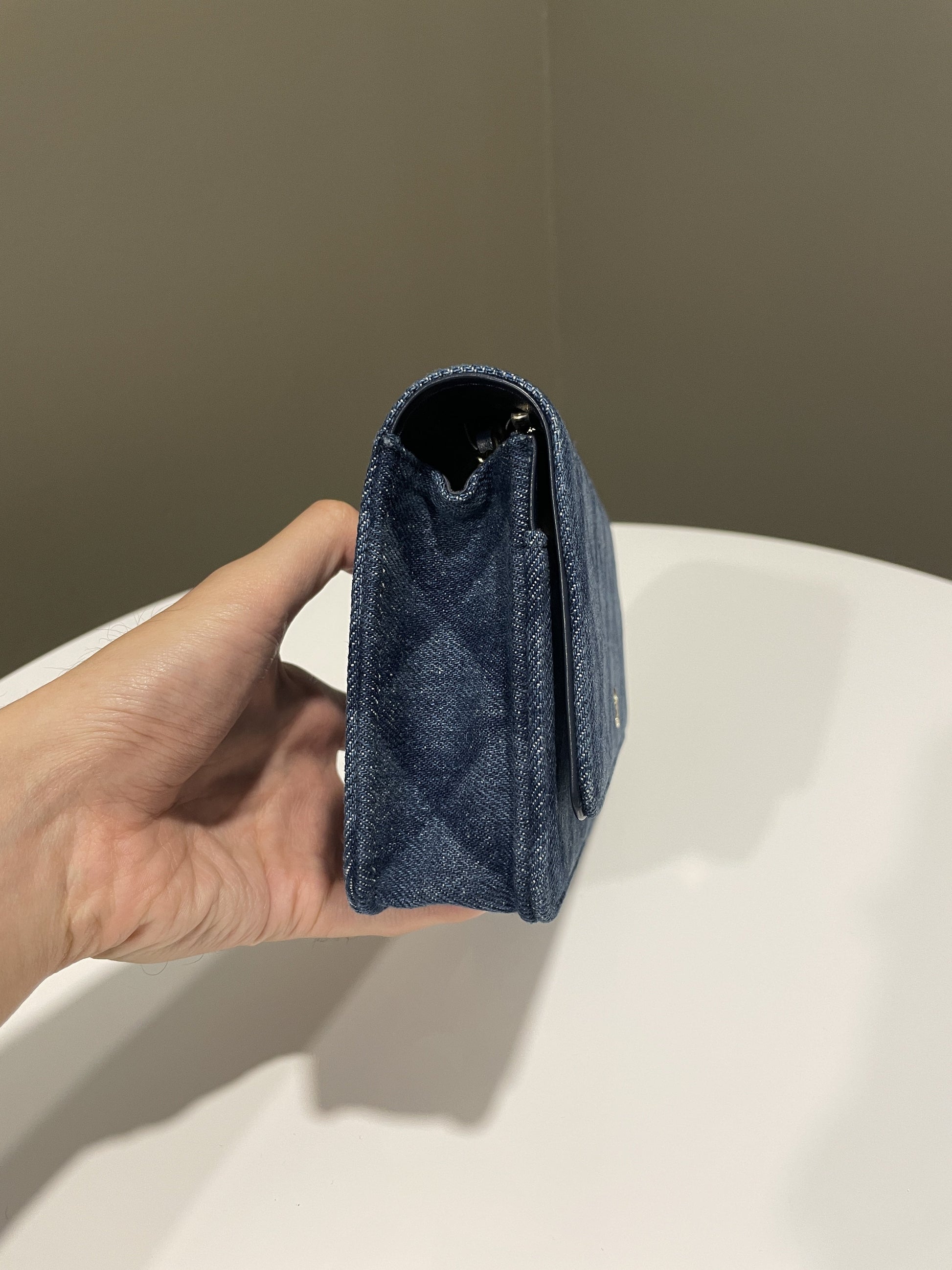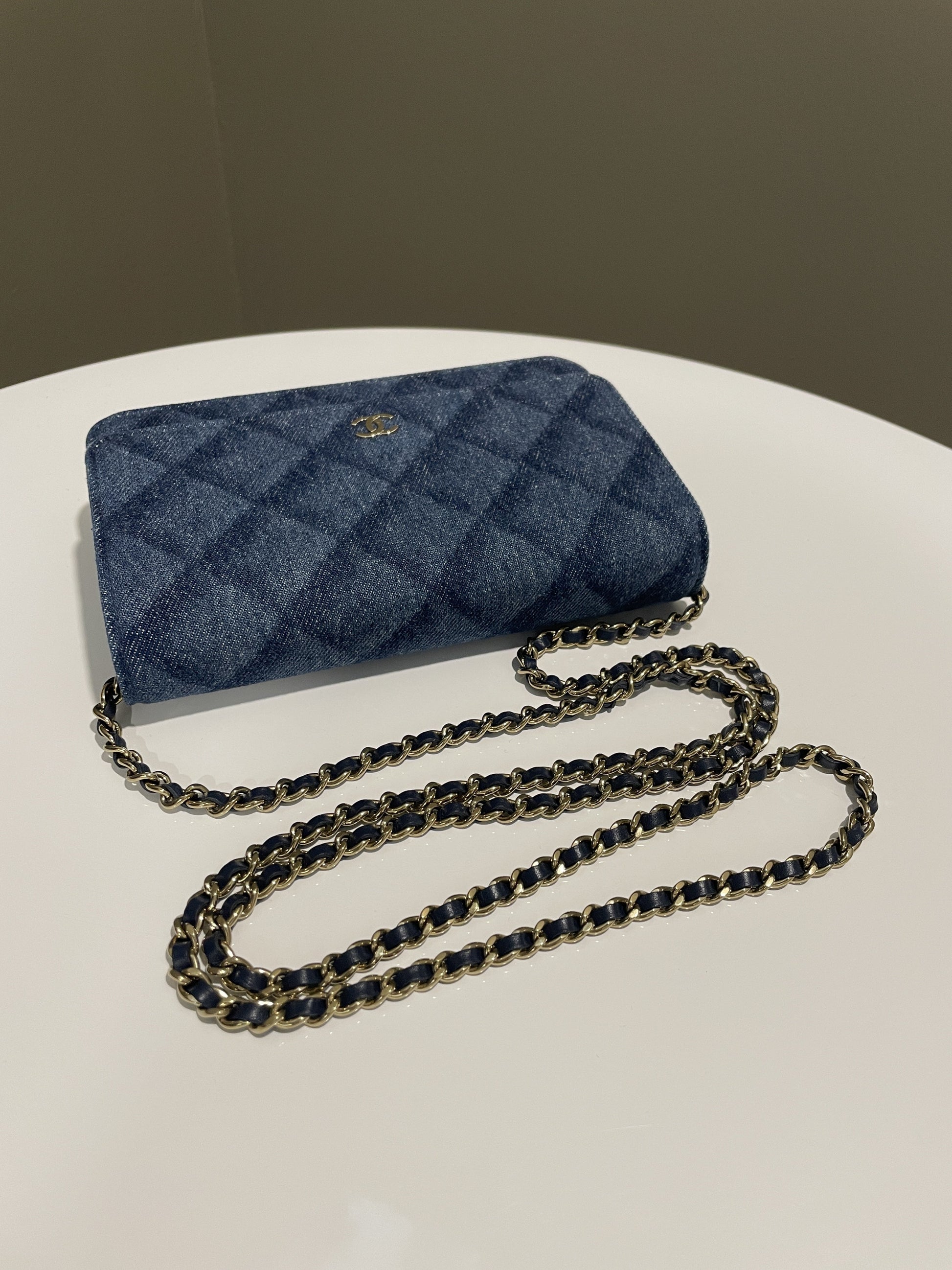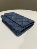 Chanel 22B Classic Quilted Wallet on Chain Blue Denim