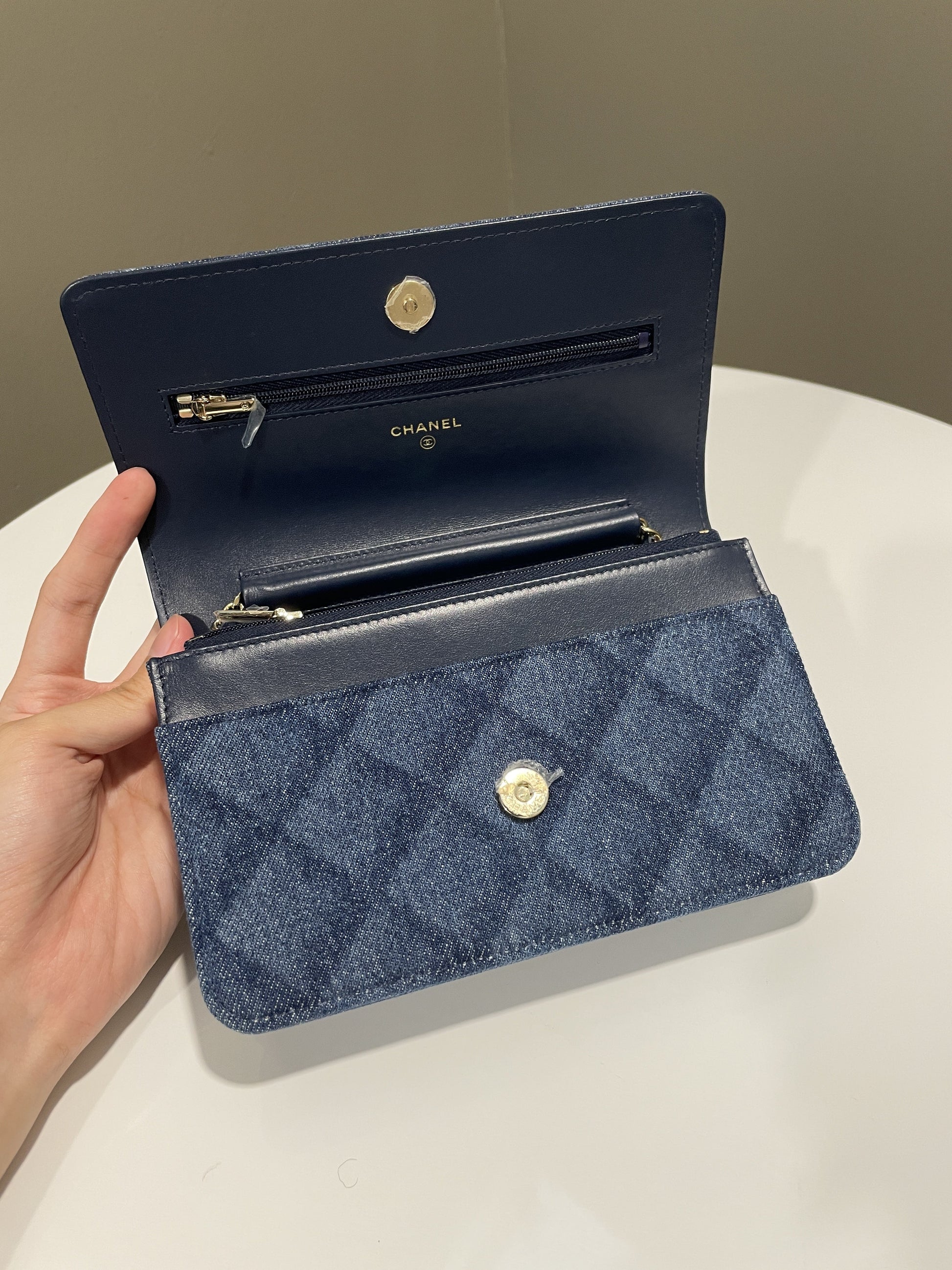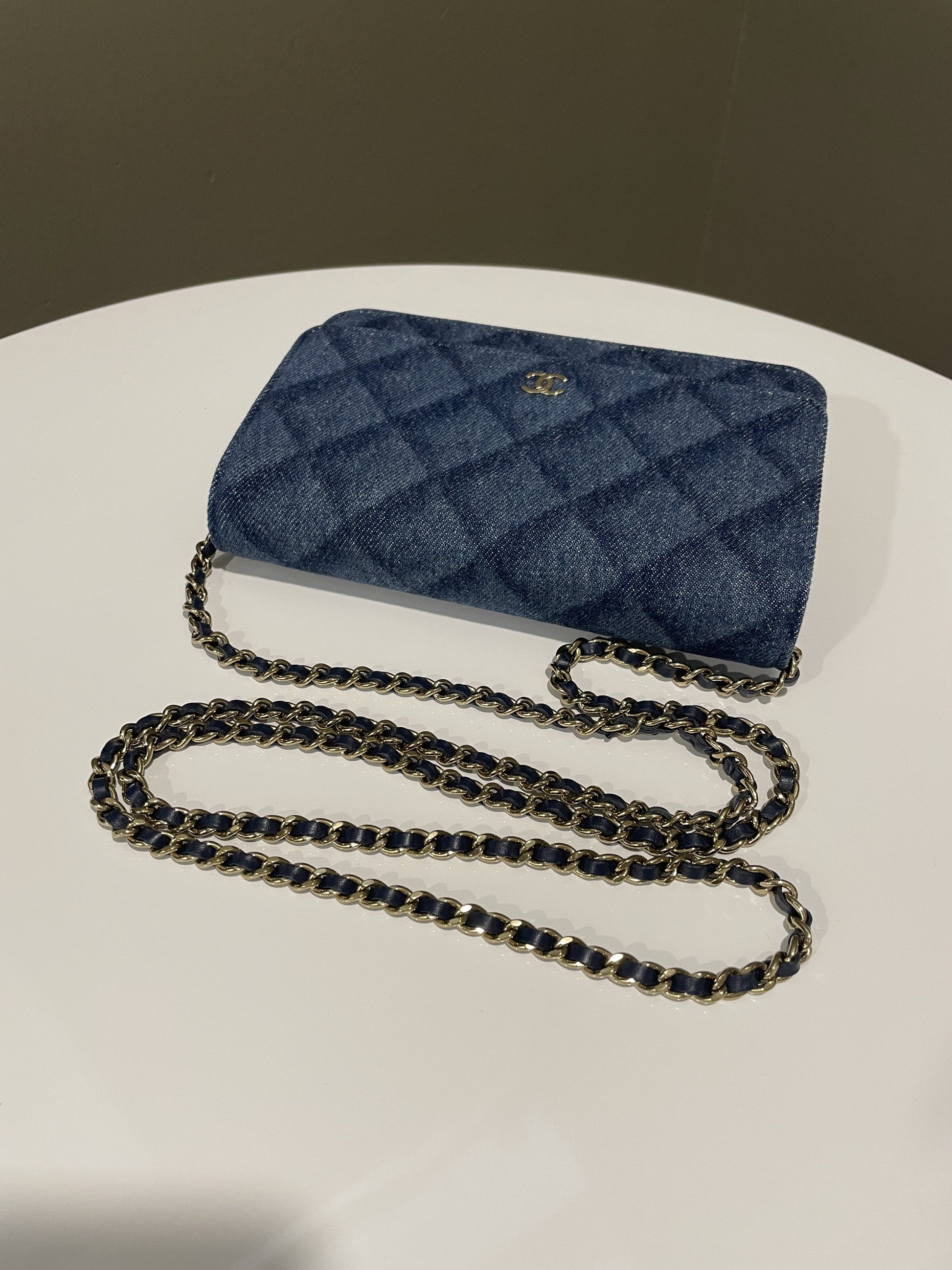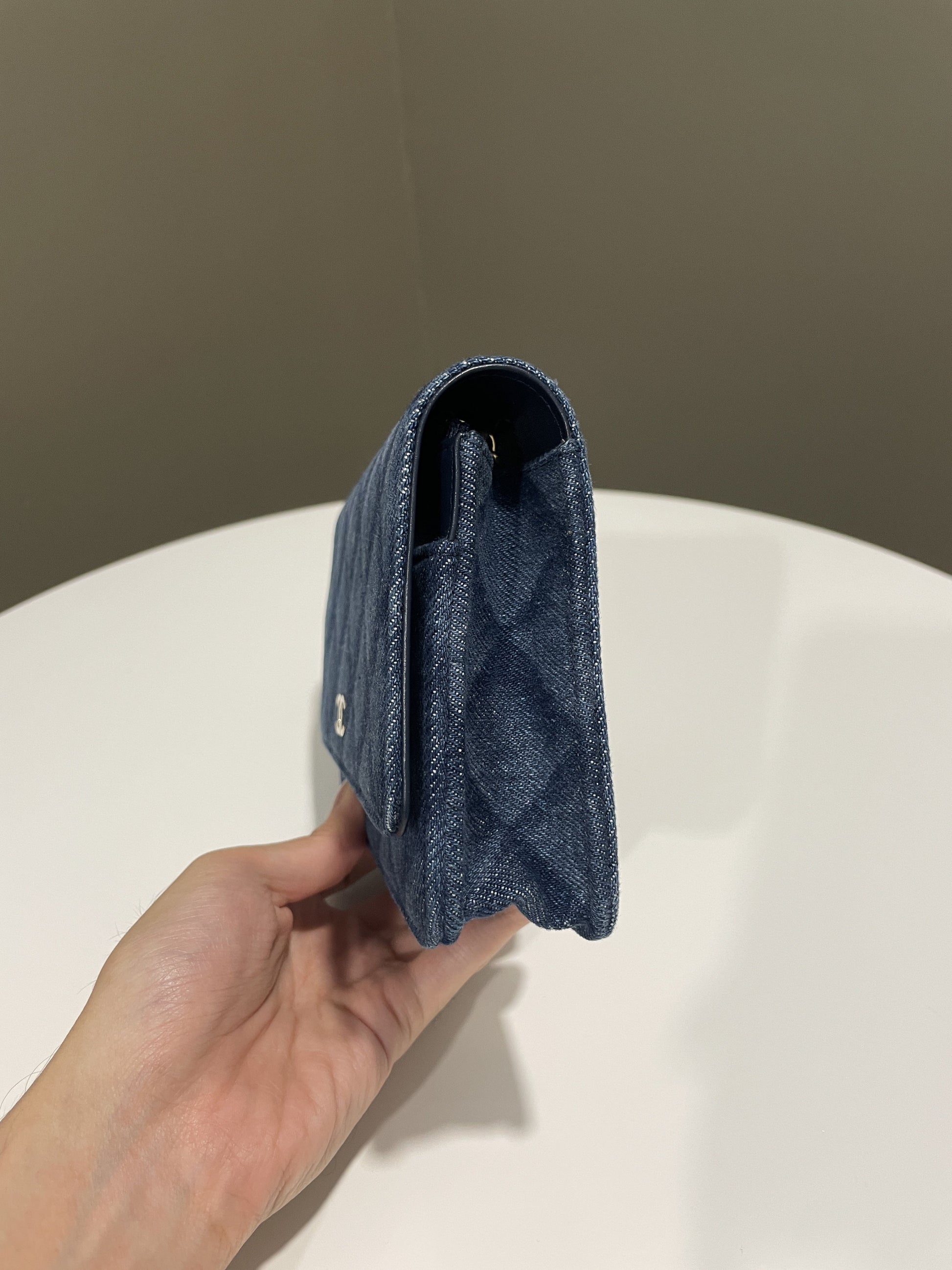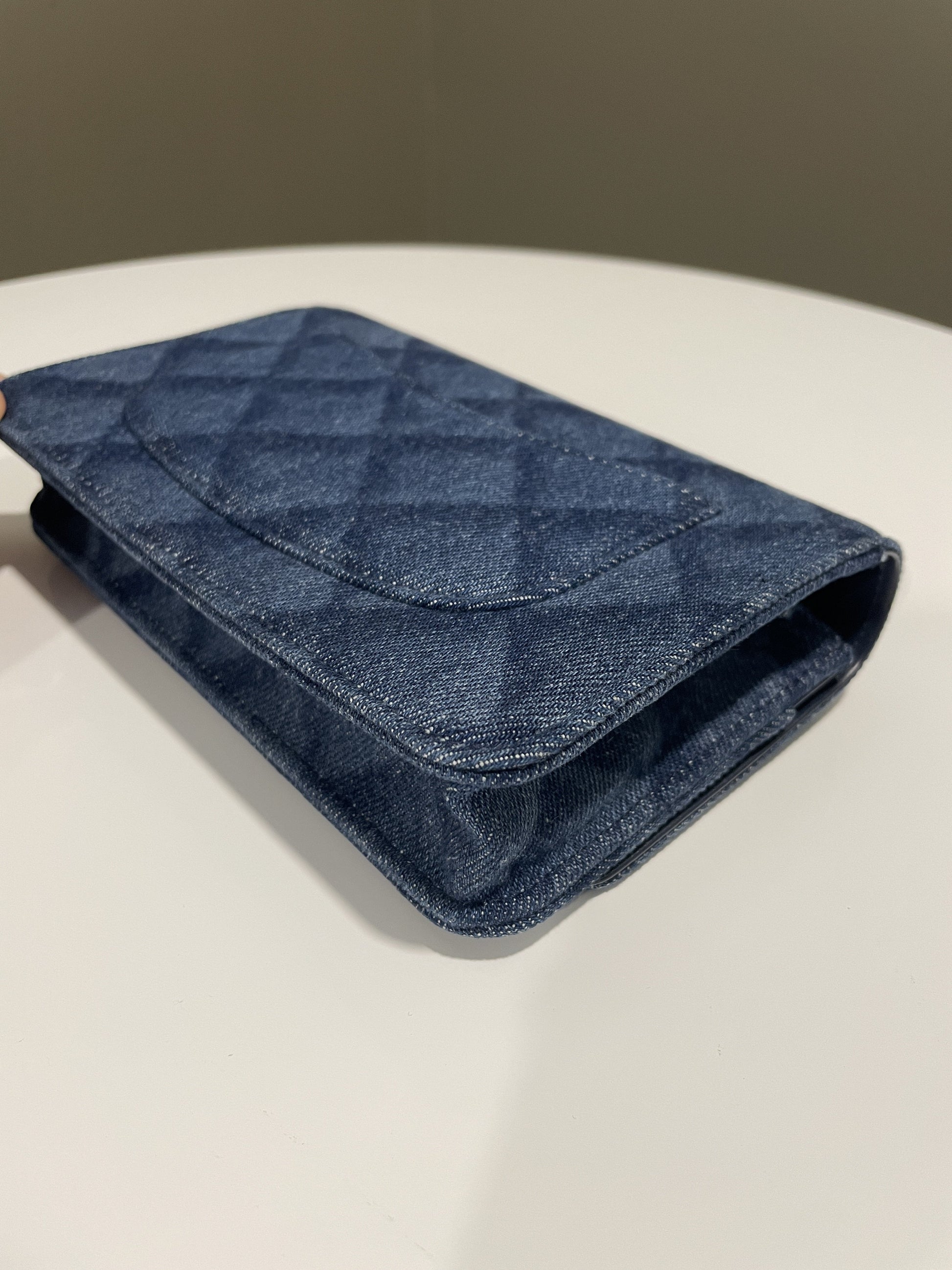 Chanel 22B Classic Quilted Wallet on Chain Blue Denim