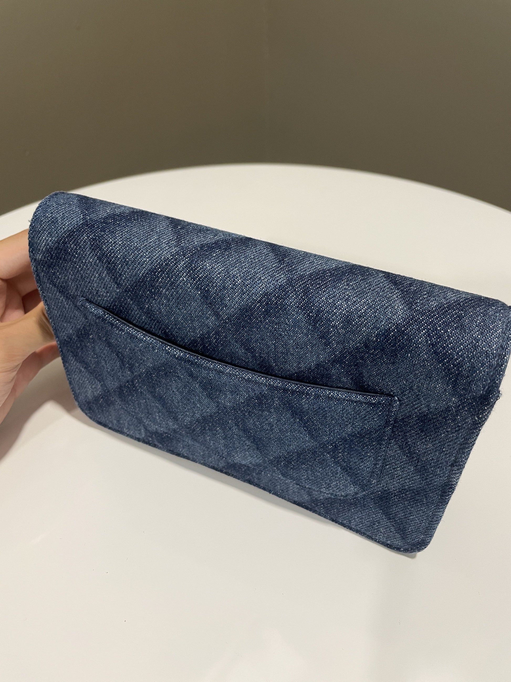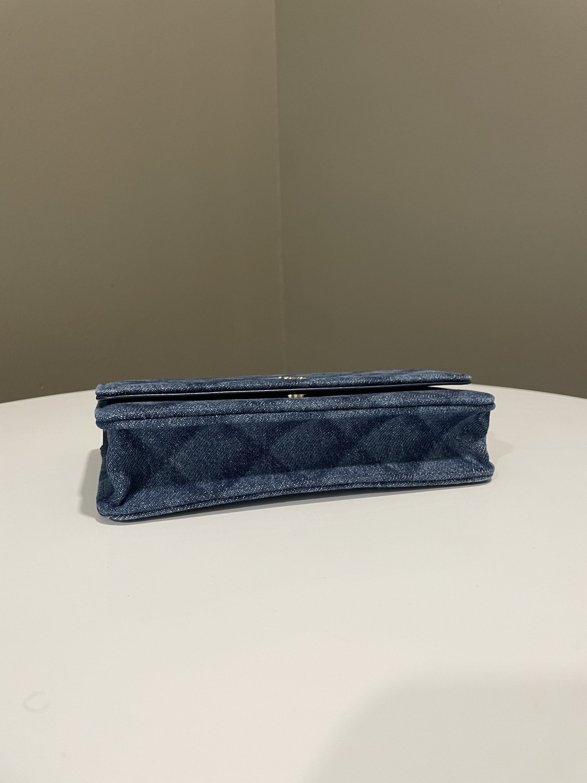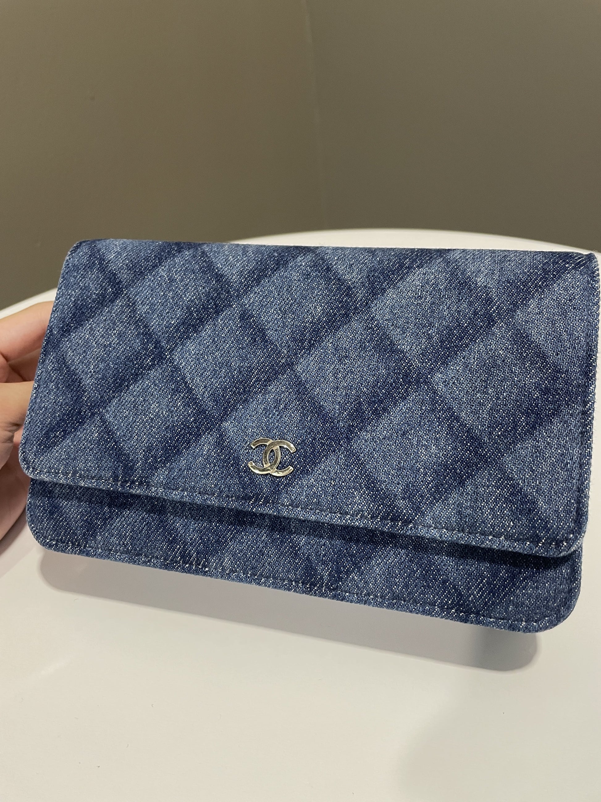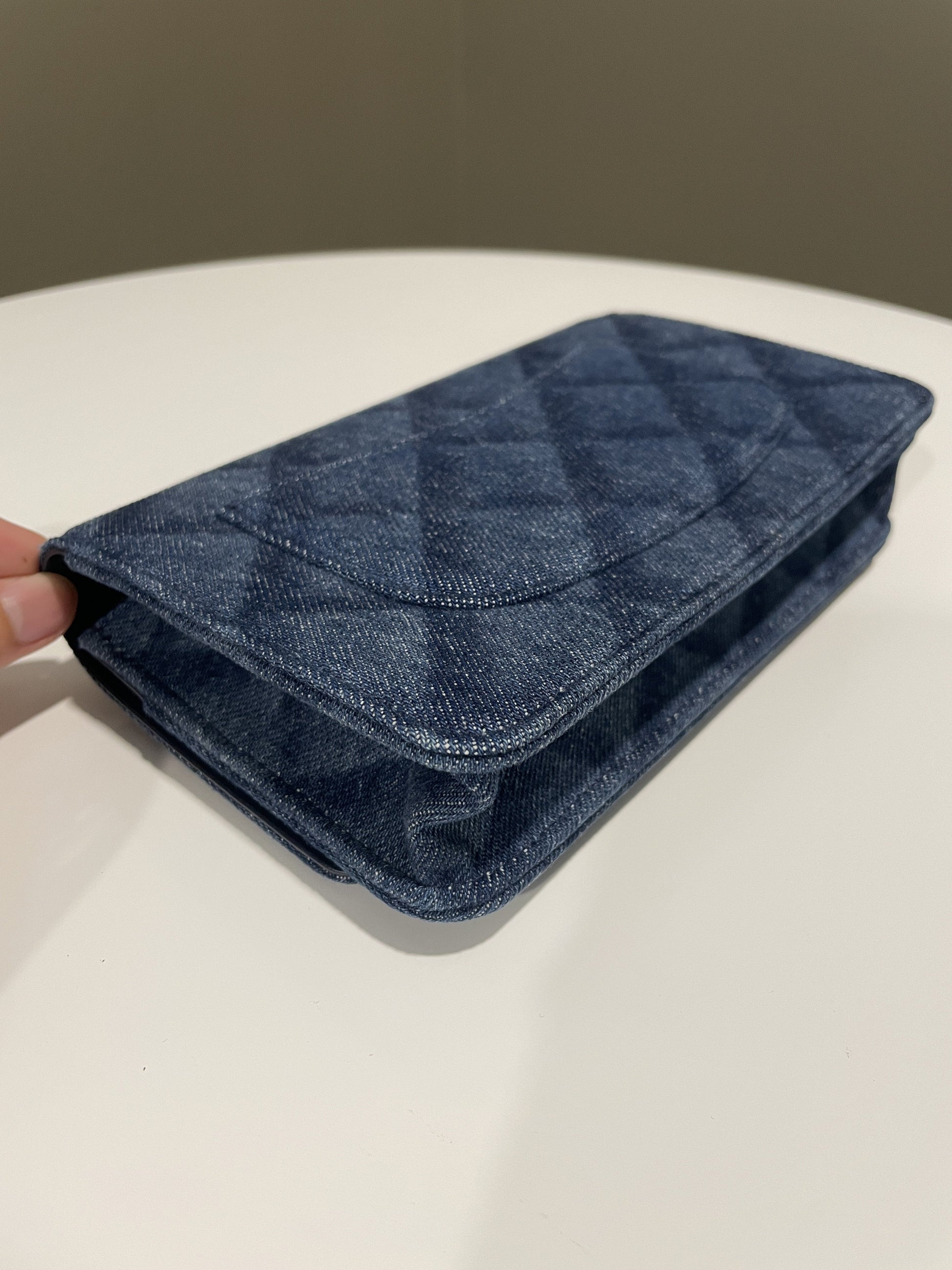 Chanel 22B Classic Quilted Wallet on Chain Blue Denim