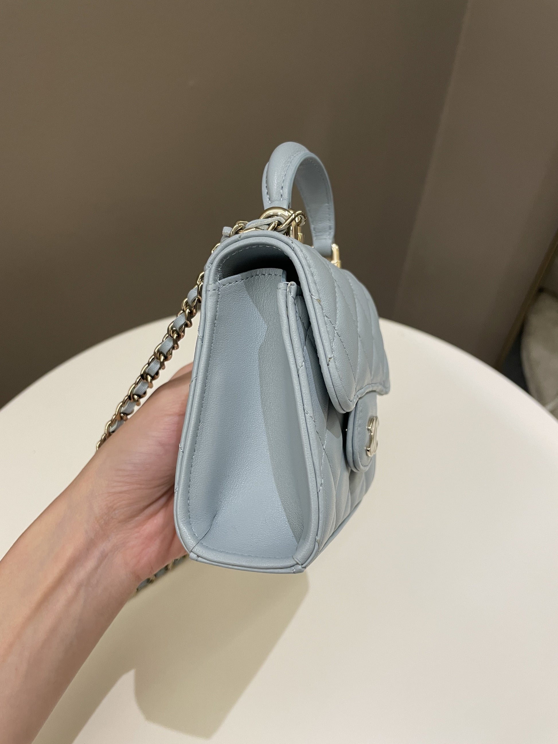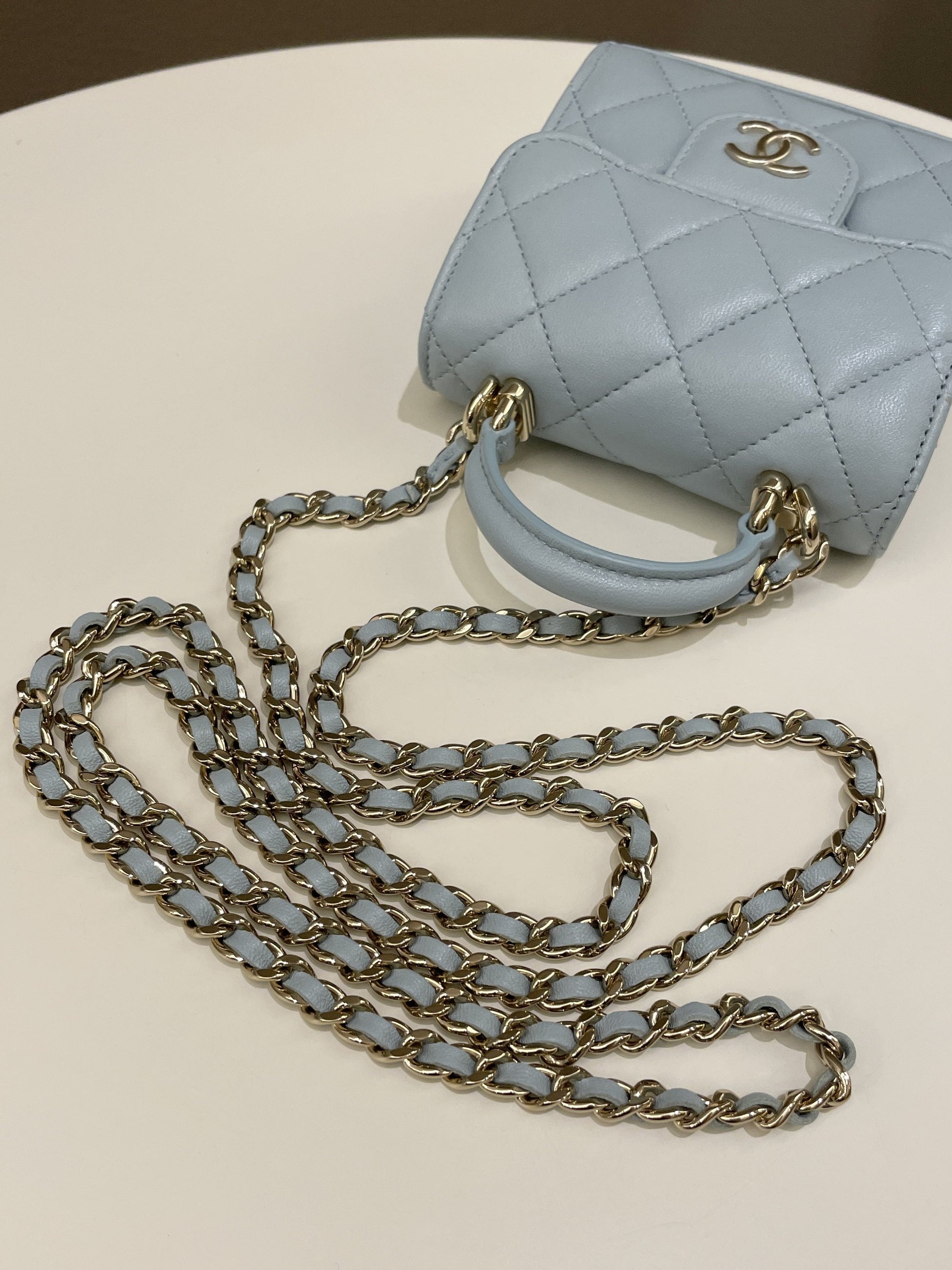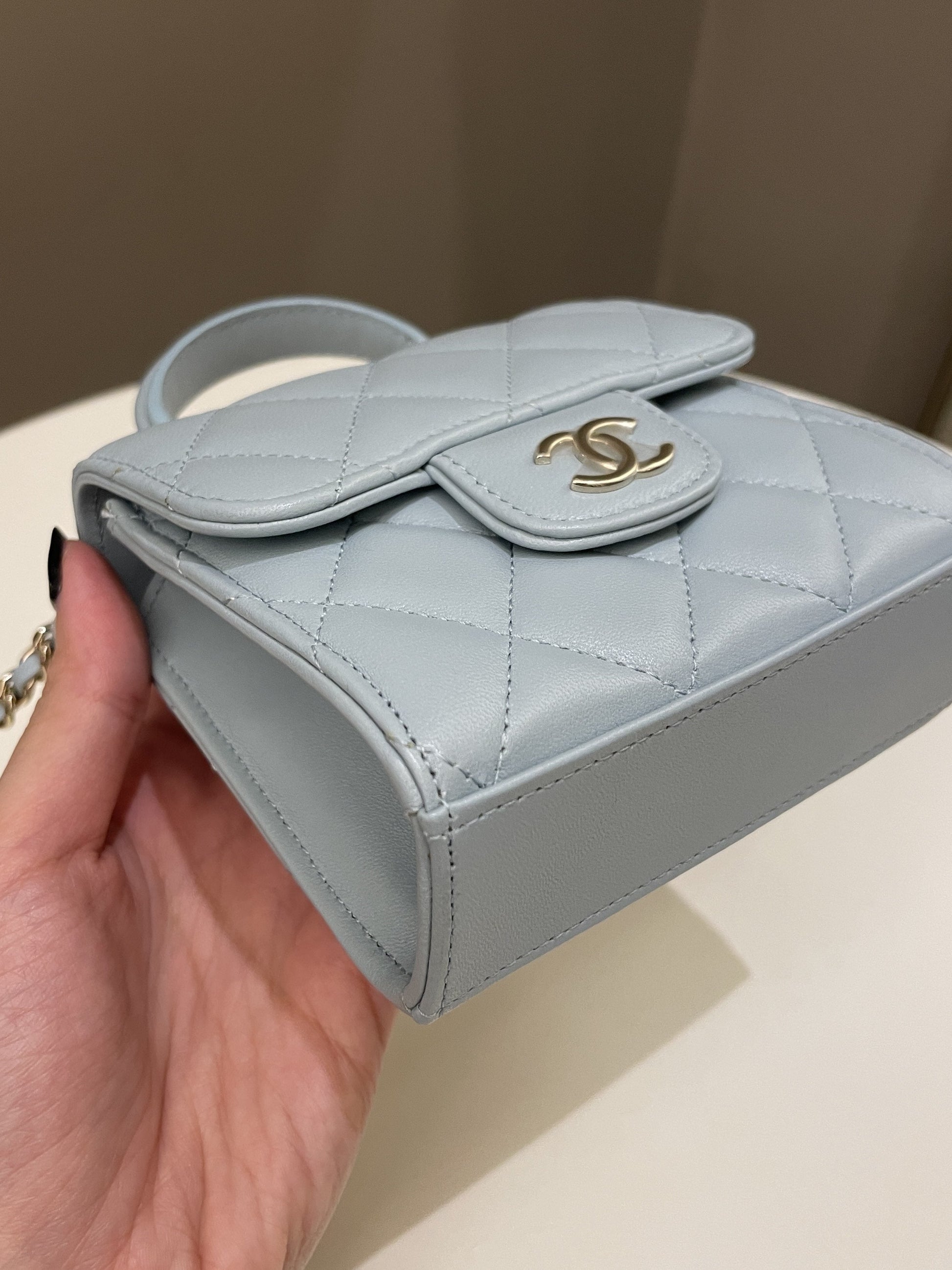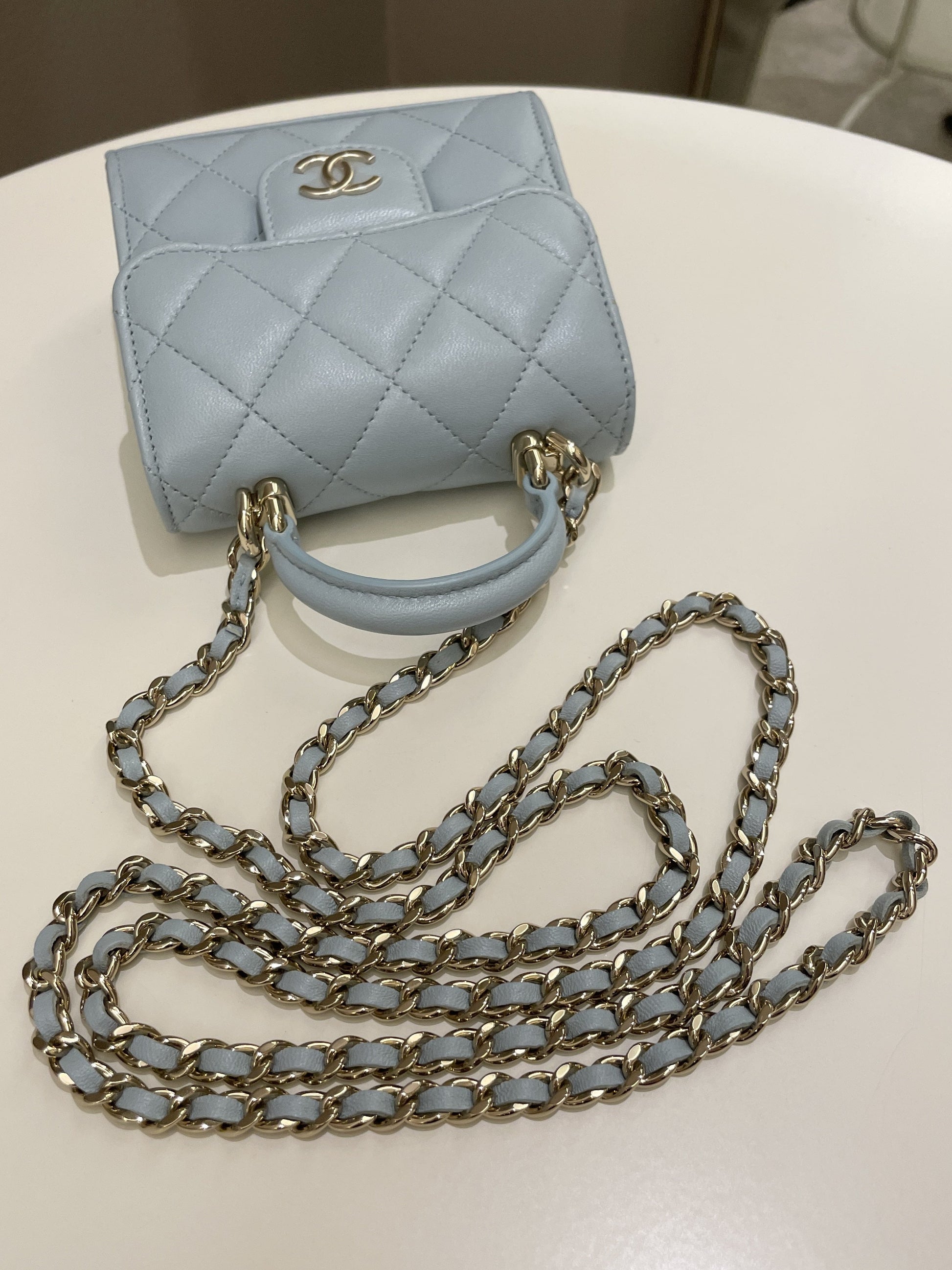 Chanel 22P Top Handle Clutch On Chain Baby Blue Lambskin
