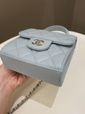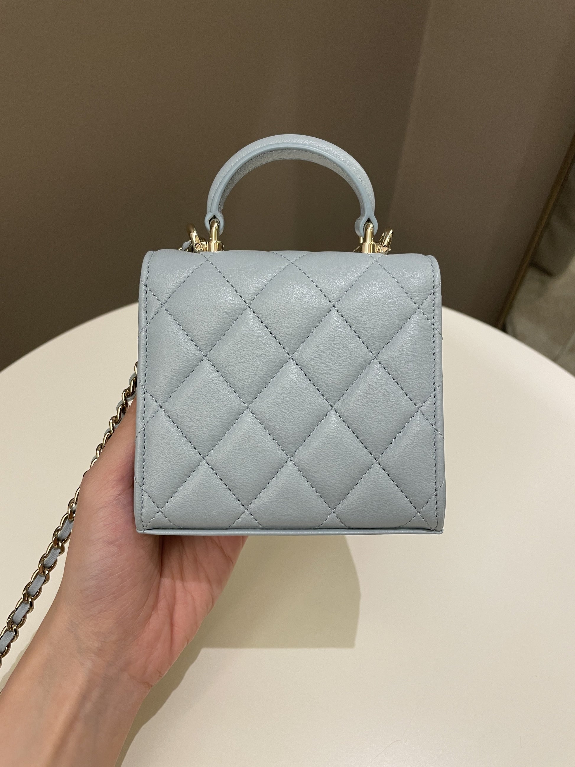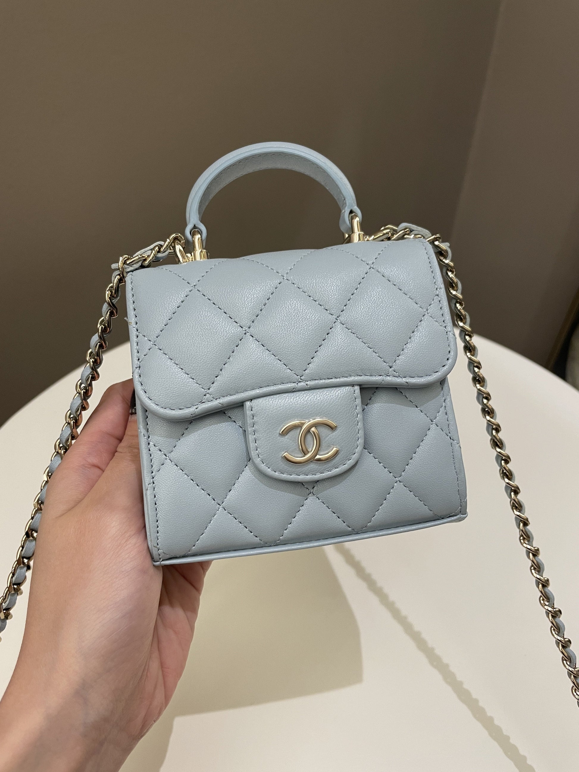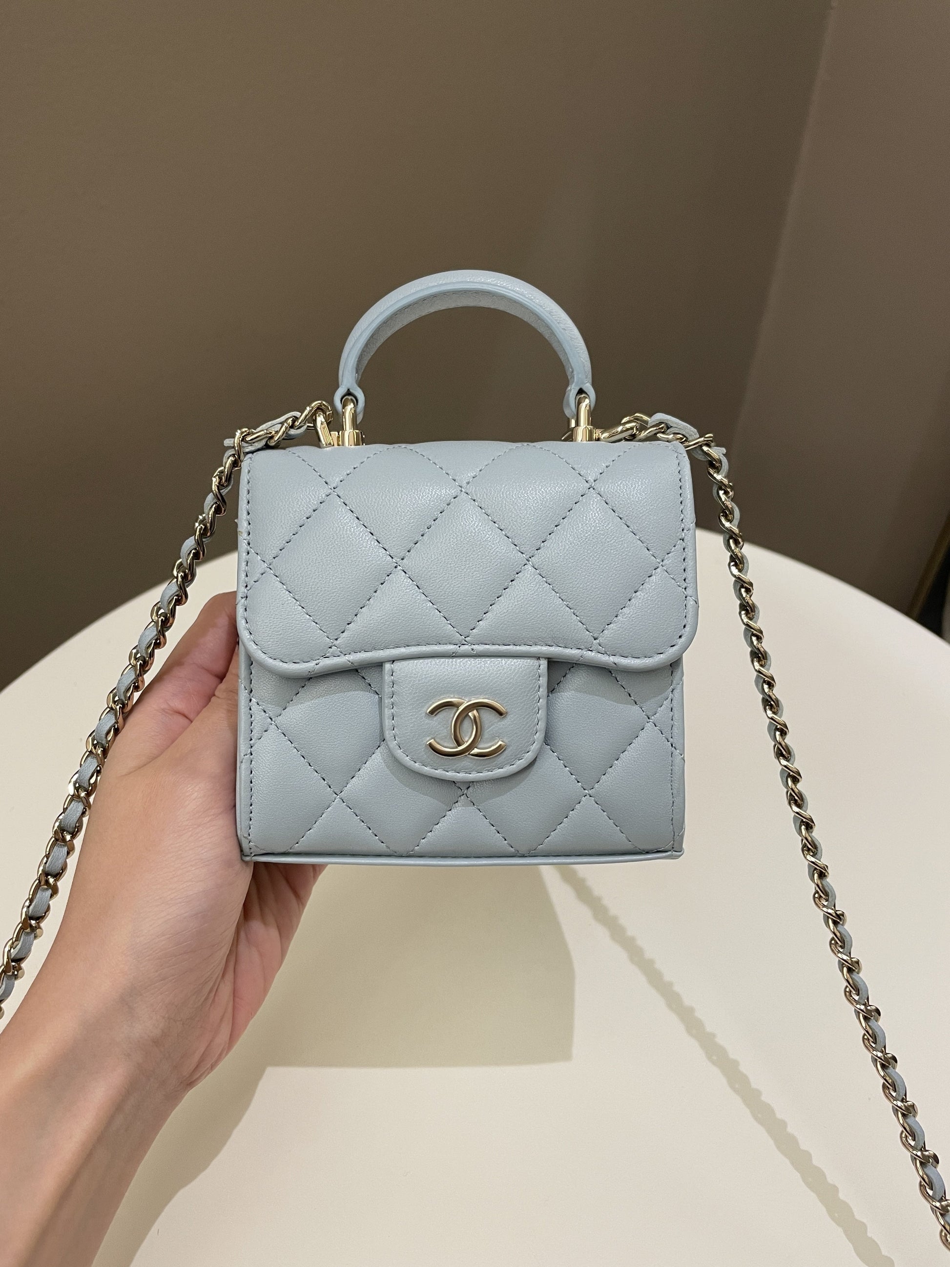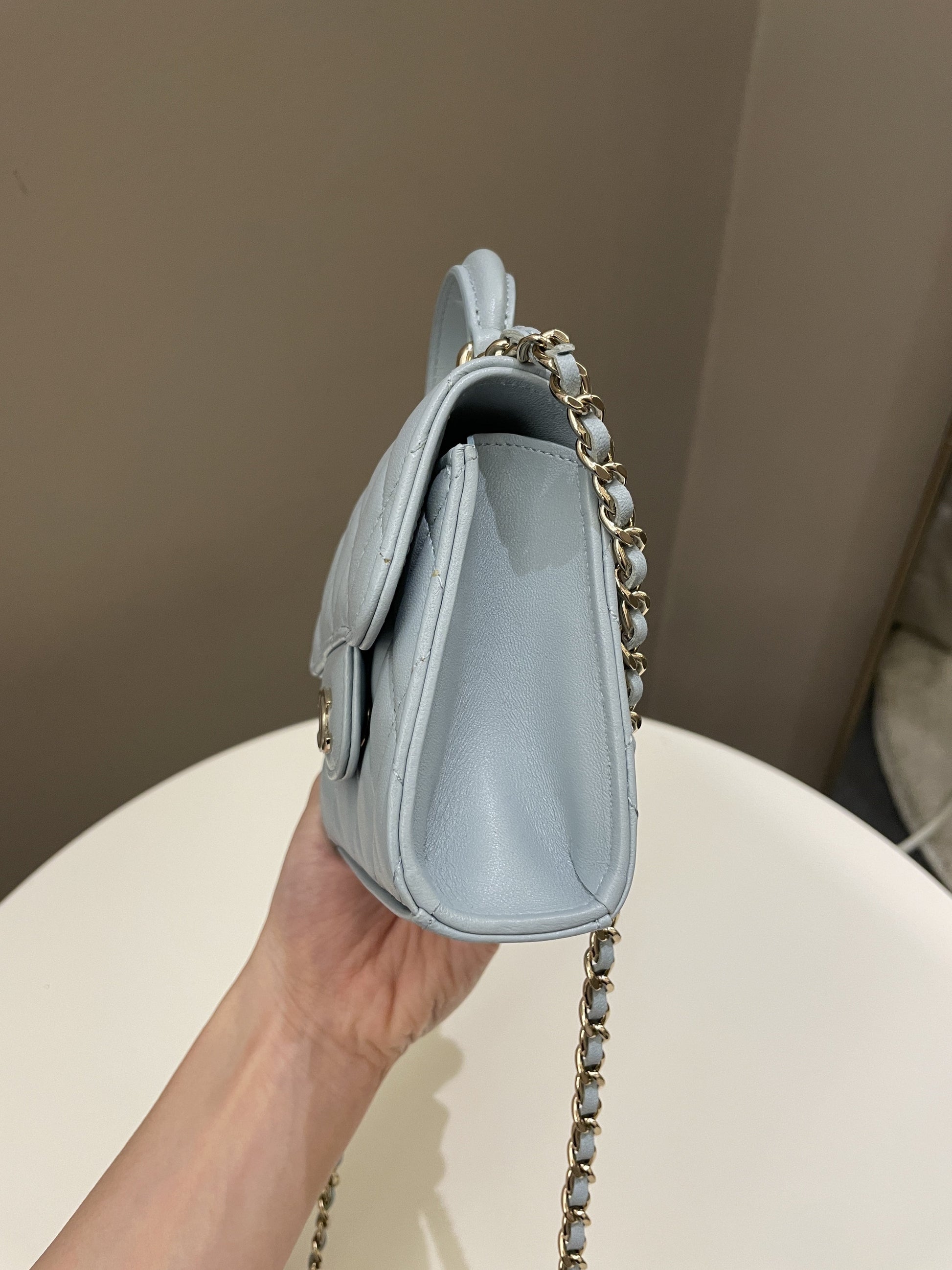 Chanel 22P Top Handle Clutch On Chain Baby Blue Lambskin