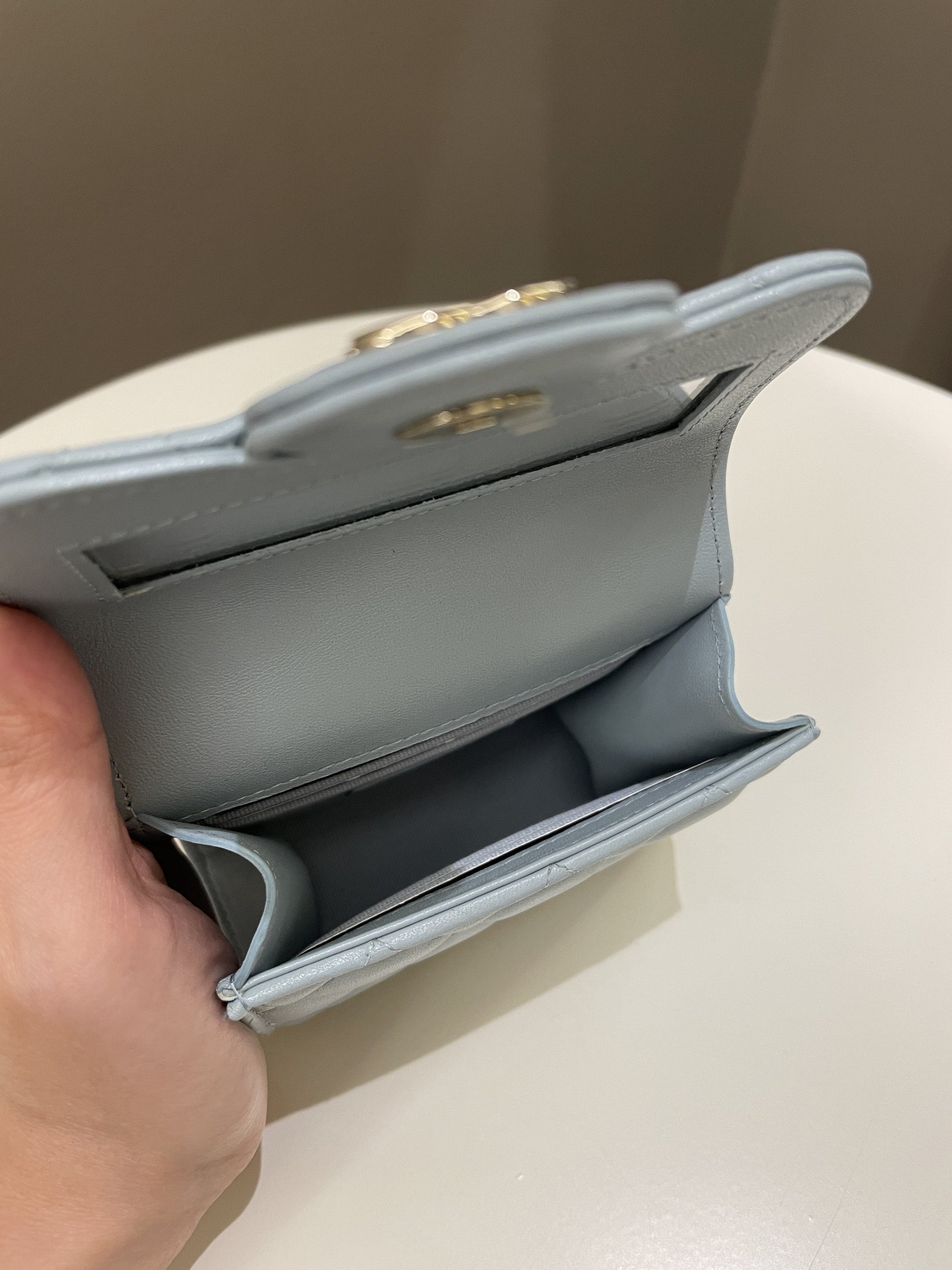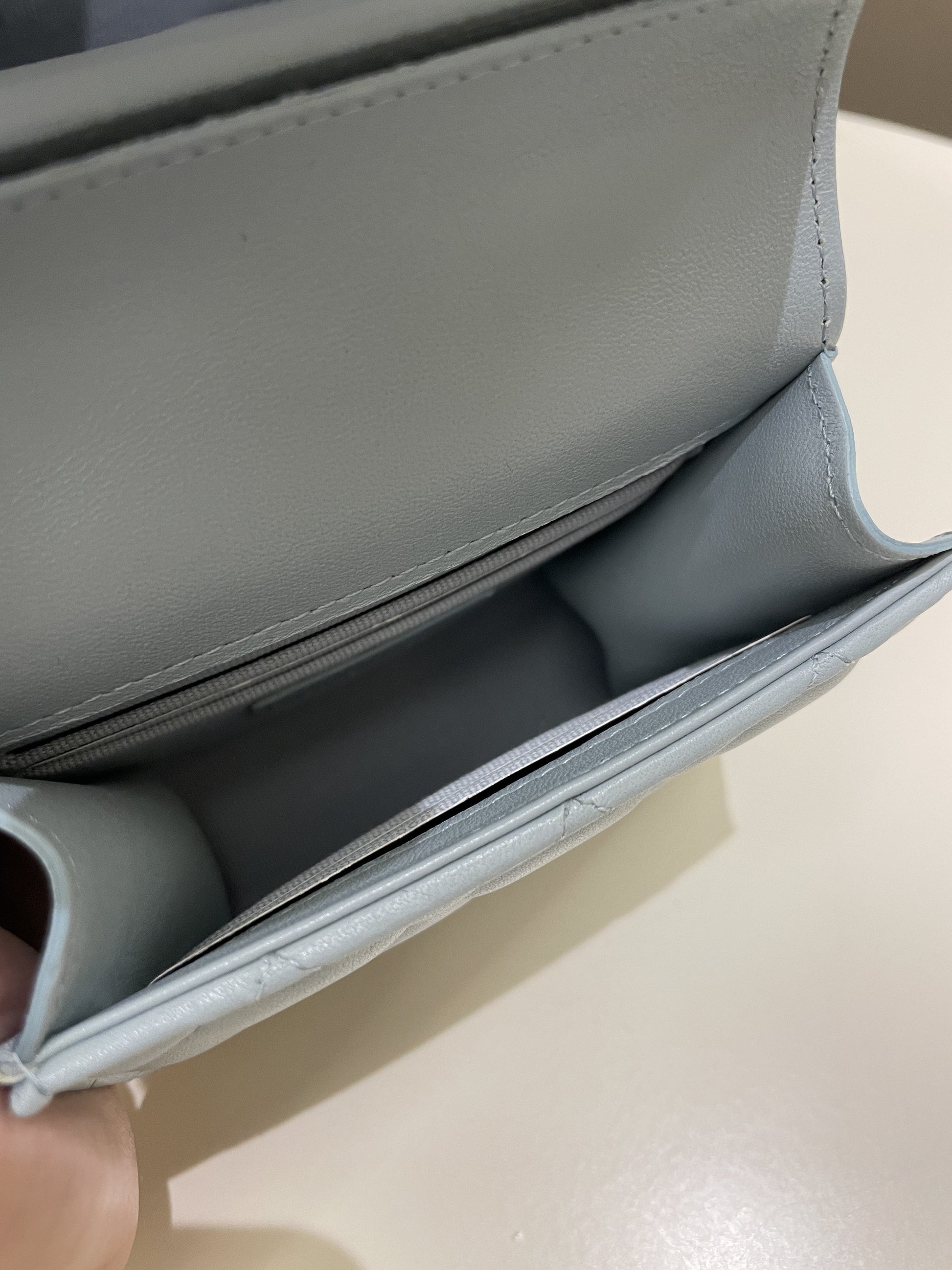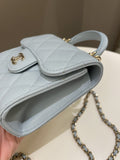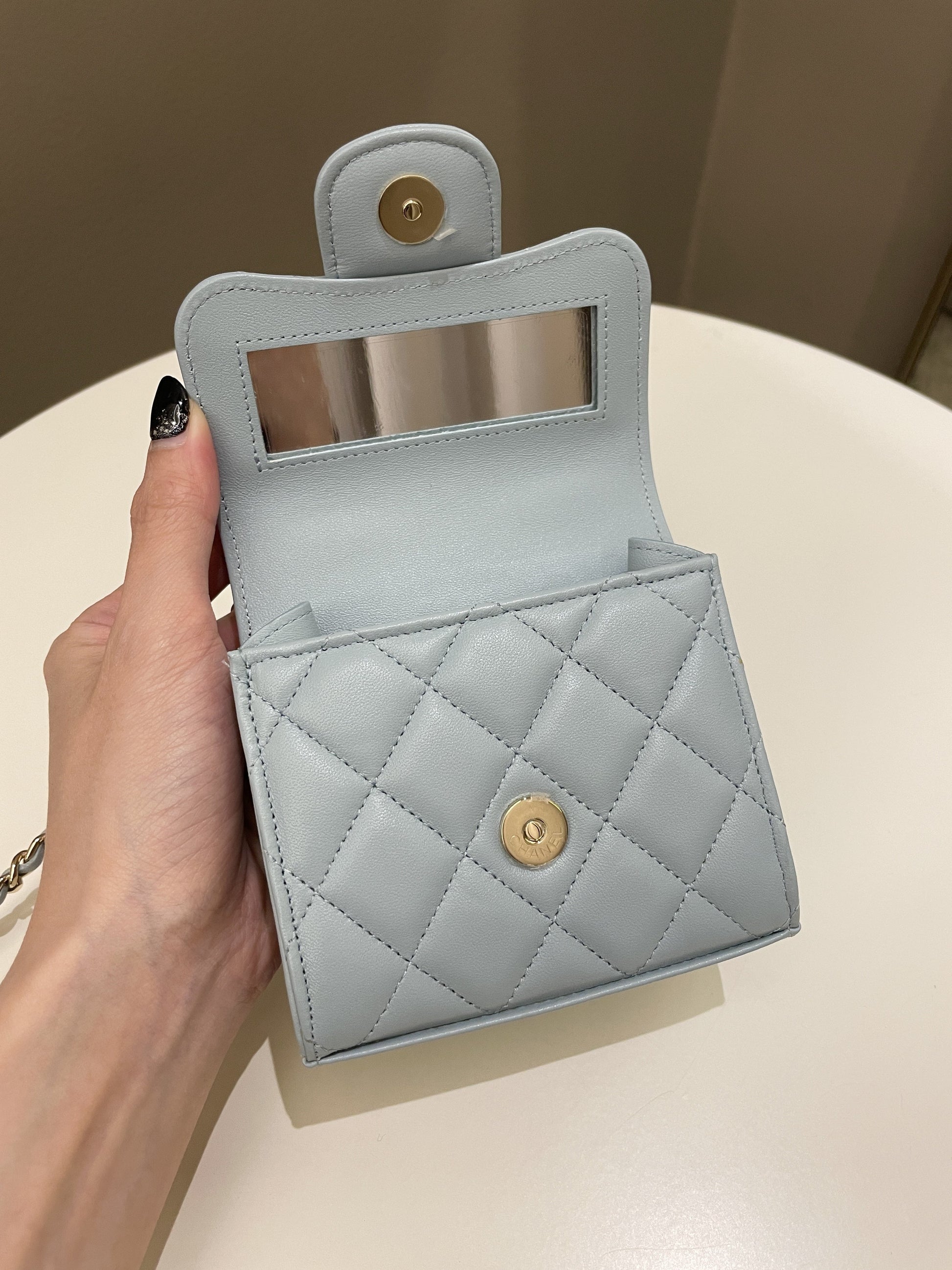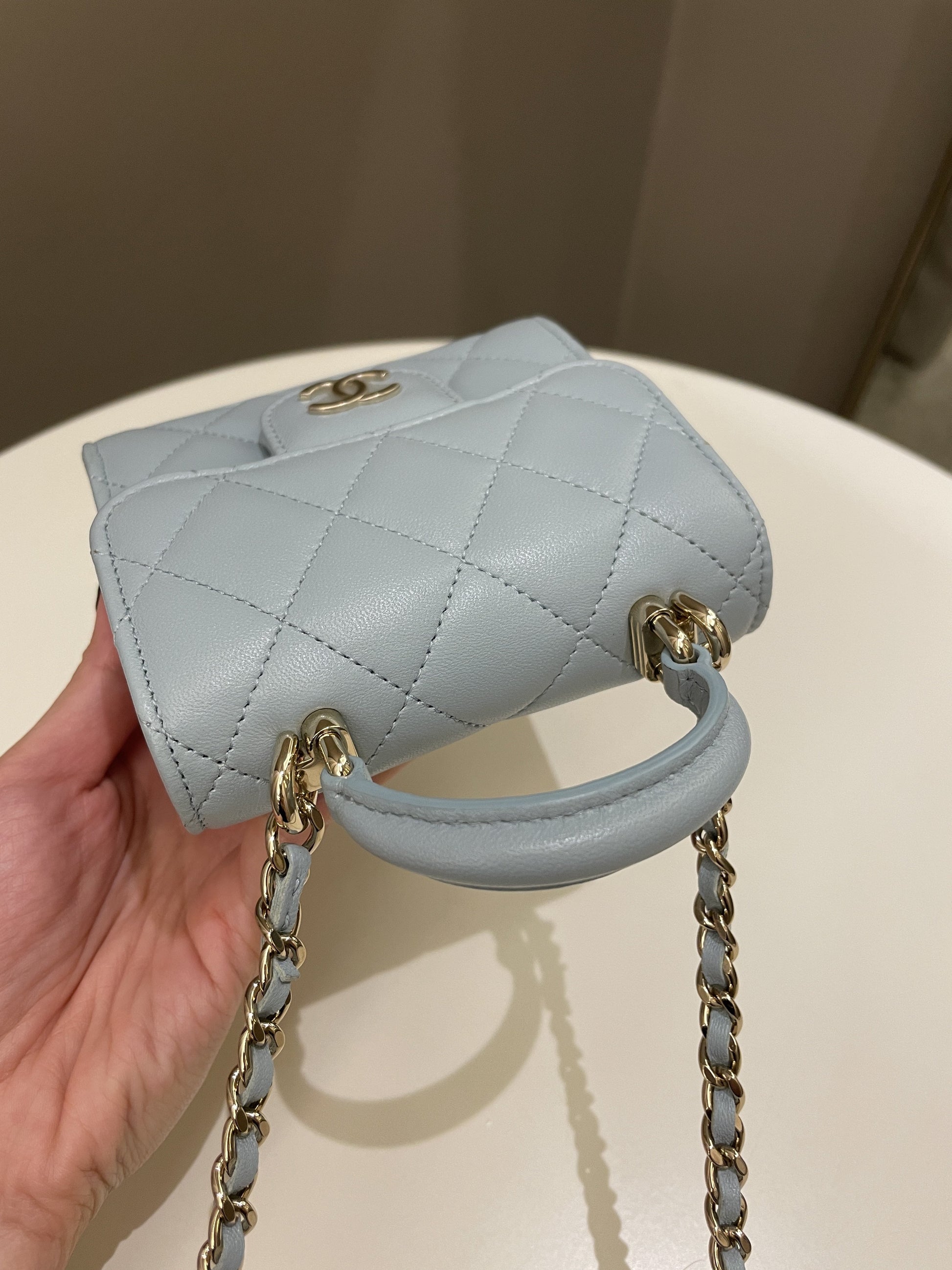 Chanel 22P Top Handle Clutch On Chain Baby Blue Lambskin