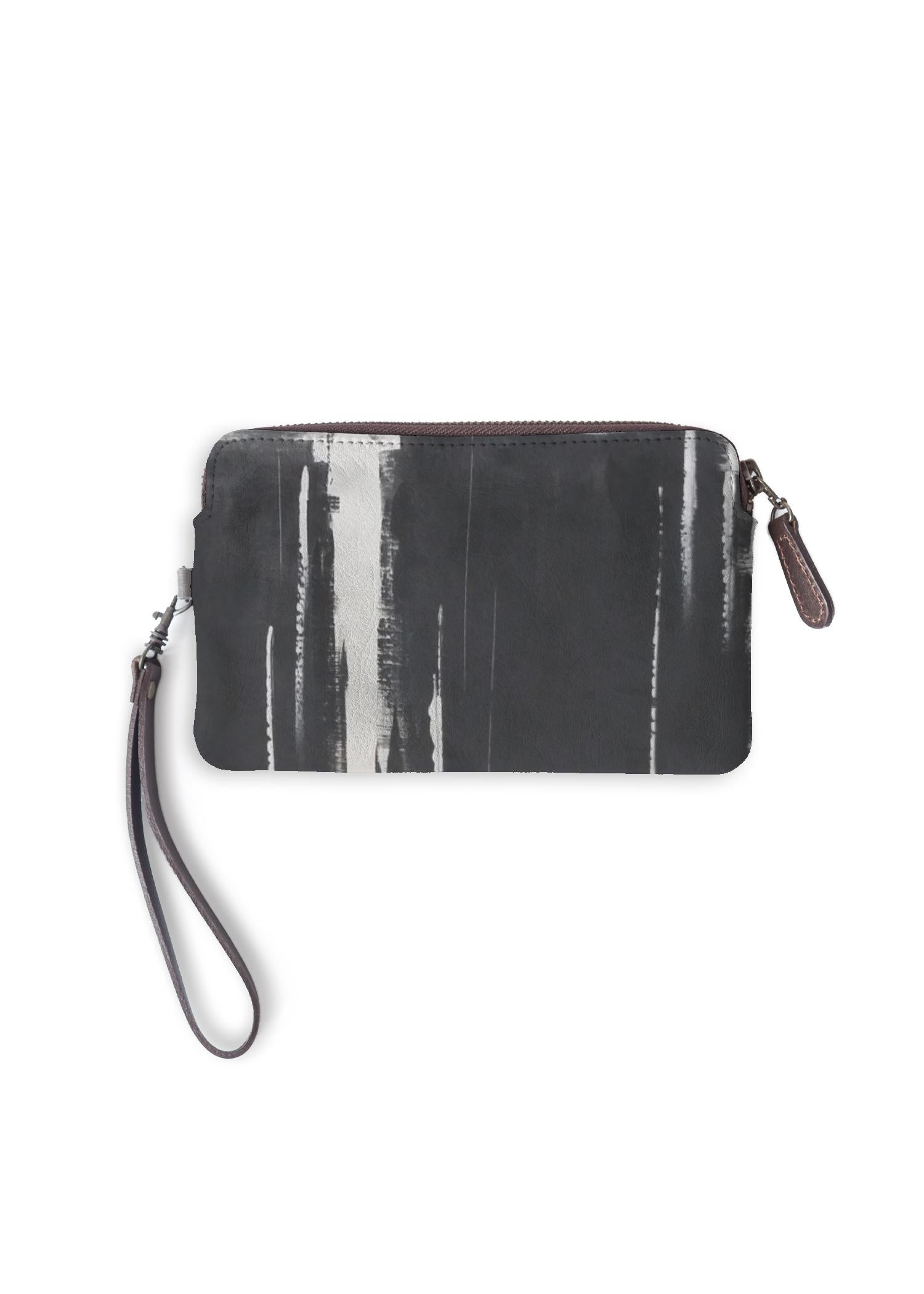 Accent your outfit with our custom made evening bag, inspired by original artwork. This Clutch features a top zip closure and removable wristlet strap.