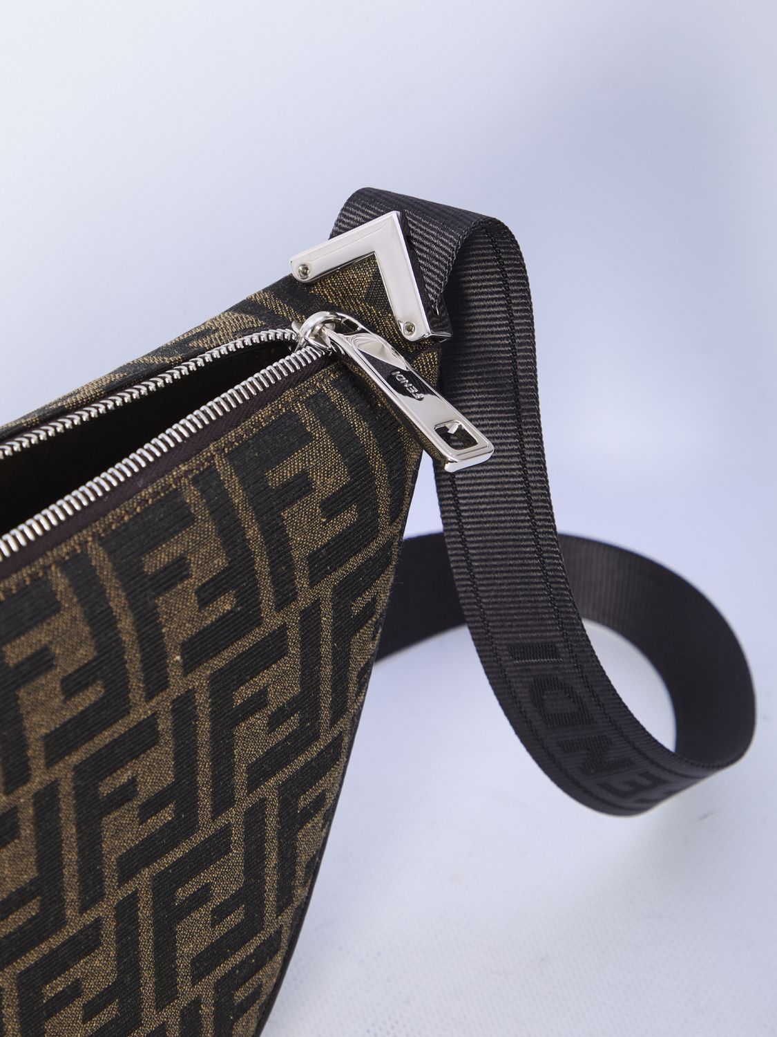 SMALL FENDI MELON BAG IN BROWN FF JACQUARD AND TONAL GRAINED LEATHER. IT FEATURES METAL FF DETAILS ON BOTH SIDES, ADJUSTABLE SHOULDER STRAP IN TECHNICAL FABRIC WITH FENDI LETTERING, ZIP CLOSURE AND ONE MAIN INTERIOR COMPARTMENT. DUST BAG INCLUDED. ANY LEATHER IMPERFECTIONS ARE NOT TO BE CONSIDERED MANUFACTURING DEFECTS, BUT A PECULIARITY OF THE MATERIAL. DIMENSIONS: 18X10X33CM SIZE NATIONALITY: UNI
