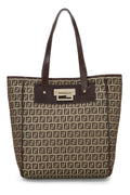 Fendi, Brown Zucchino Canvas Tote Small, Brown