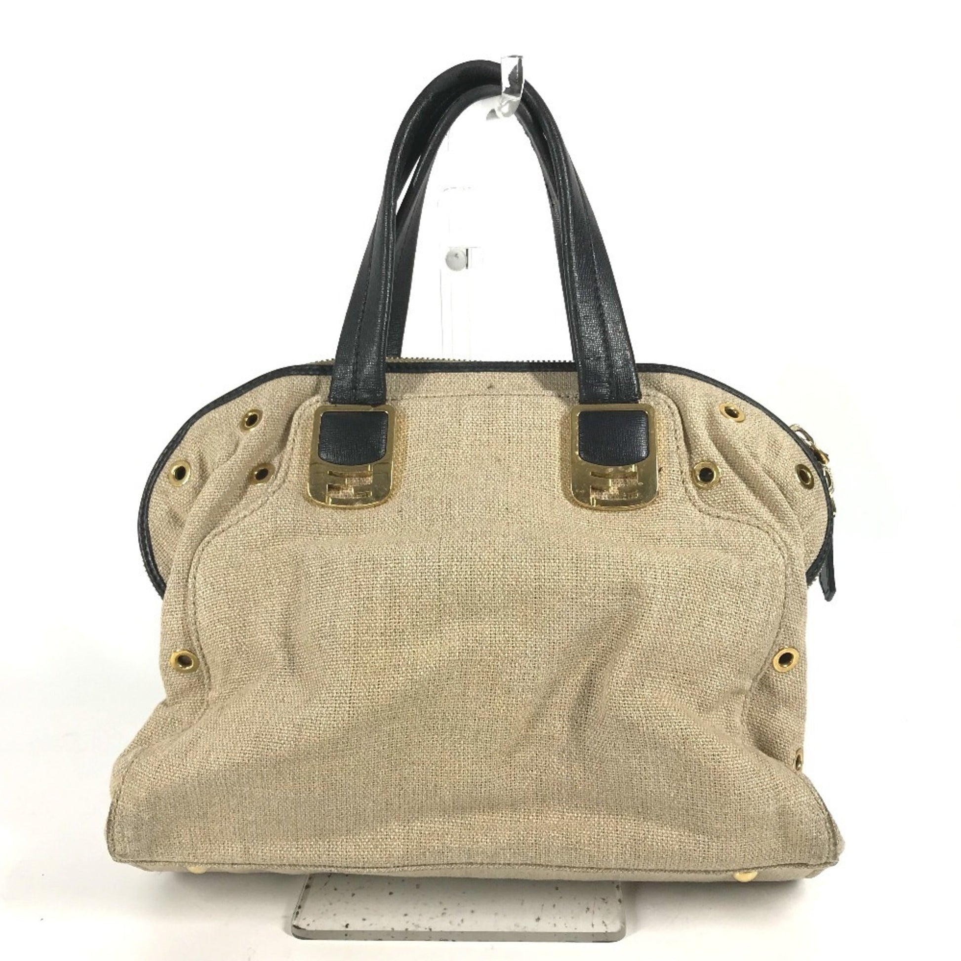 Brand - Fendi, Color - Beige, Black, Material - Hemp, Leather, Dimensions - 24.5cm x 31cm x 13cm / 9.64'' x 12.2'' x 5.11'', Condition - Rank A. Rank A New- A few traces of usage, some New / dirt can be seen but overall in very New condition. Before purchasing, please refer to the images for the exact condition of the item. Before purchasing, please refer to the images of the accessories included with the item. Bag Common Damage Scratch - Slight Size - One Size