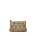 Fendi’s monogram FF Clutch Bag is an elegant accessory made of soft, luxurious velvet with the brand’s signature FF pattern covering the entire surface. The zippered top closure keeps items secure, while the removable chain strap adds a touch of sophistication and versatility, allowing it to be carried on the shoulder or crossbody. Inside, a single compartment offers convenient storage for your essentials.