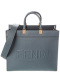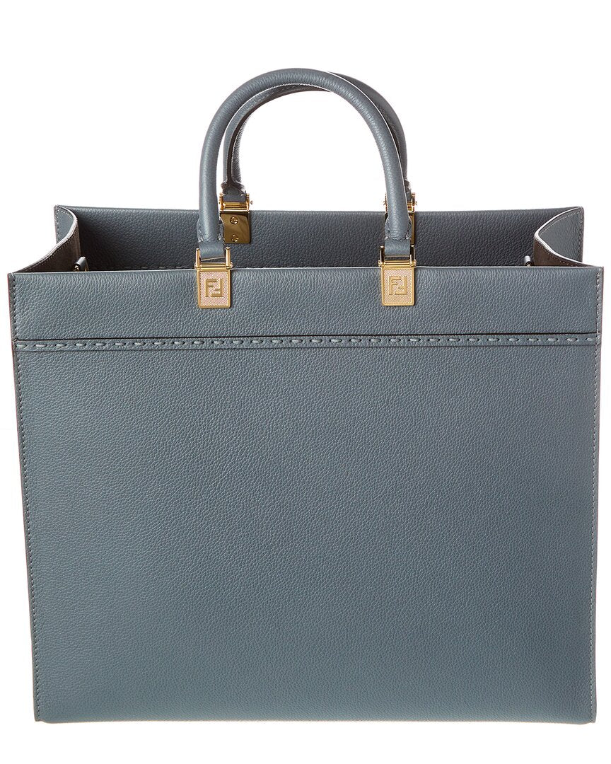Introducing the FENDI Sunshine Medium Leather Tote, a true embodiment of innovative and elegant Italian luxury. This beautiful tote bag is expertly crafted in Italy from blue leather with gold-tone hardware, showcasing FENDI's attention to detail and quality. The interior features a luxurious suede lining, providing a stylish contrast to the vibrant exterior. Measuring 16 inches wide by 14 inches high and 8.5 inches deep, this spacious tote offers ample room for all your daily essentials. The top handles have a 5-inch drop, while the removable shoulder strap boasts a 17.5-inch drop for versatile carrying options. Please note that all measurements were taken by hand and are approximate, with slight variations that may occur. Rest assured that , sourced from trusted independent suppliers to ensure ity. Elevate your wardrobe with the FENDI Sunshine Medium Leather Tote and experience luxury at its finest.