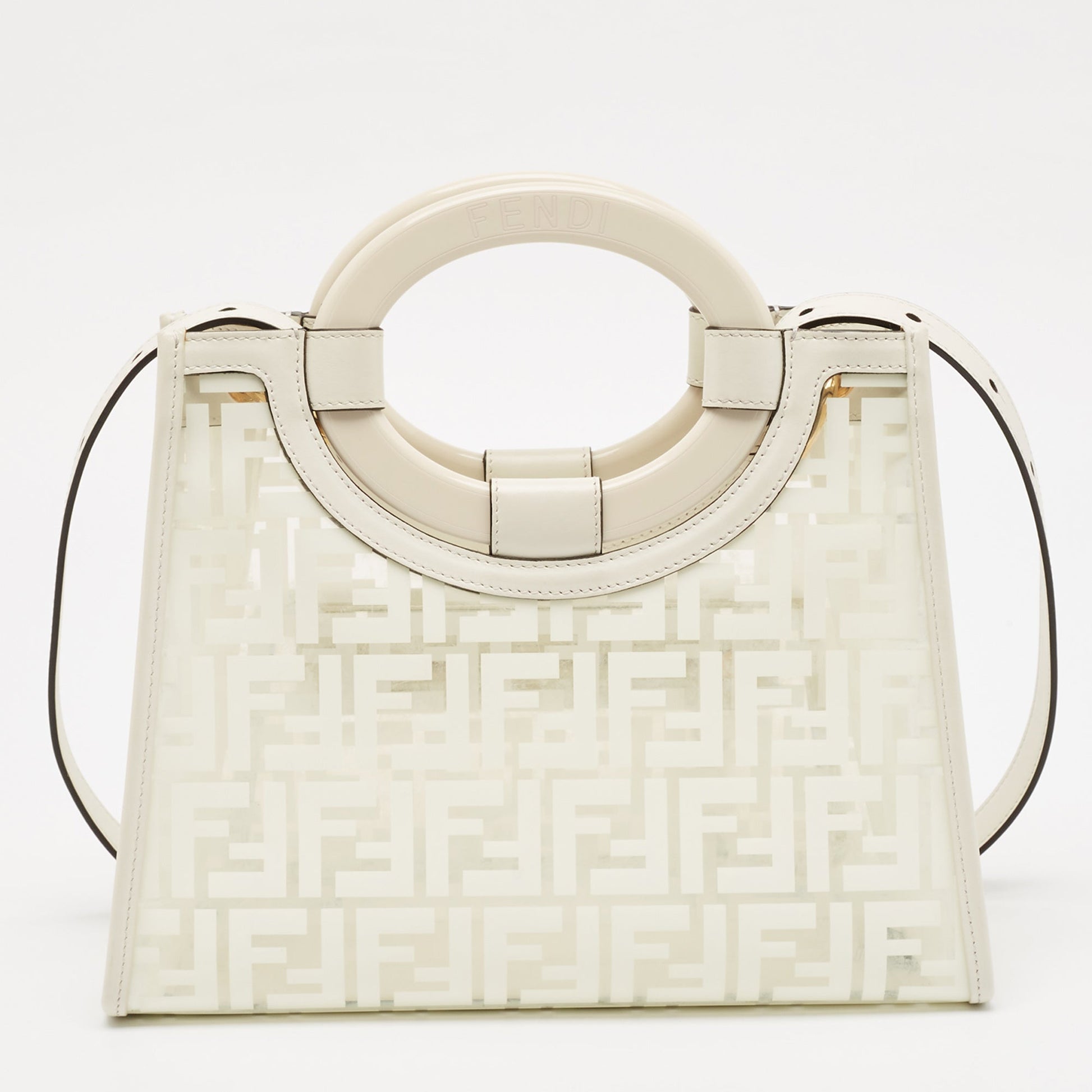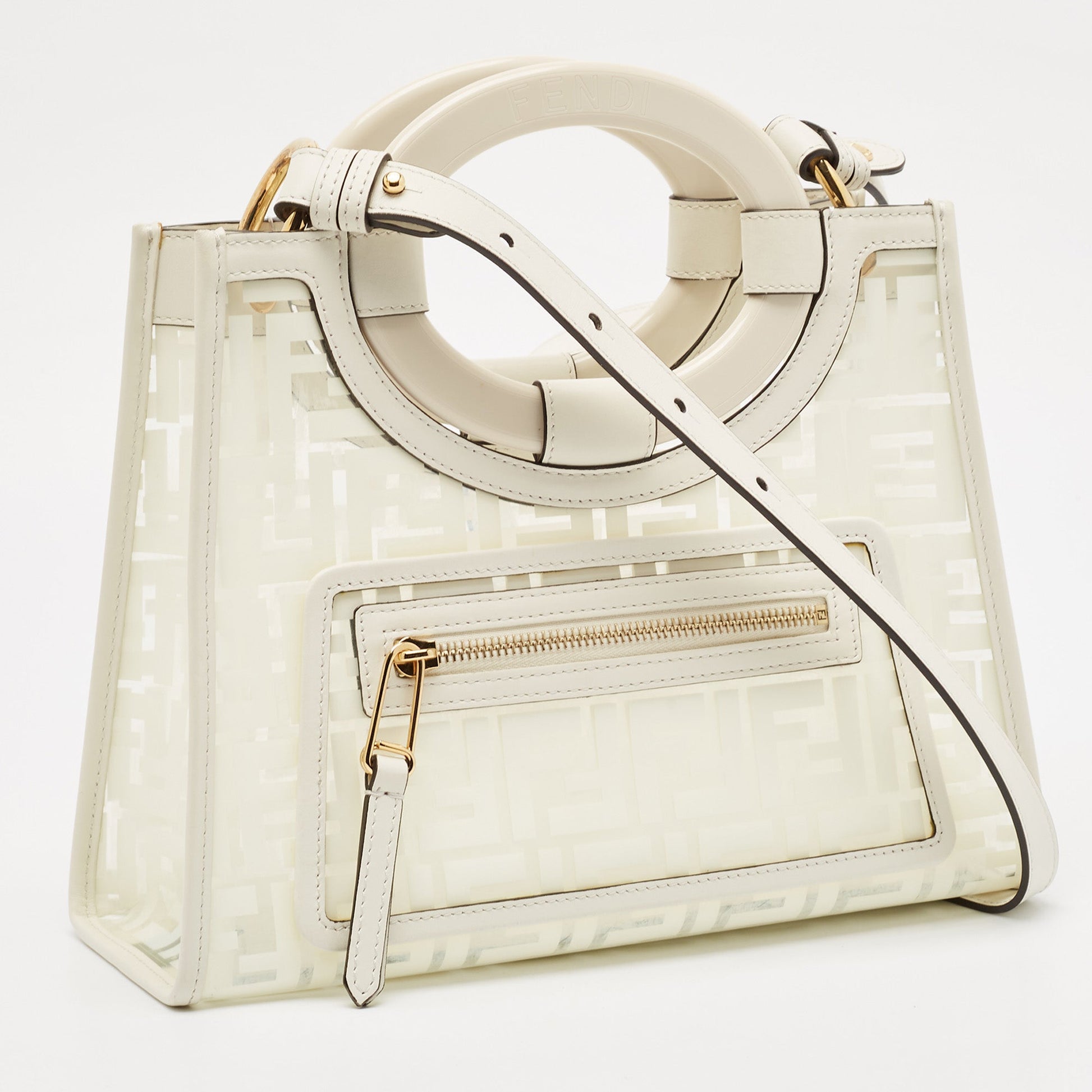 Fendi Transparent/off White Zucca Pvc And Leather Small Runaway Shopper Tote