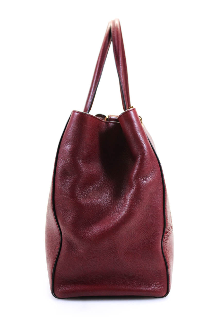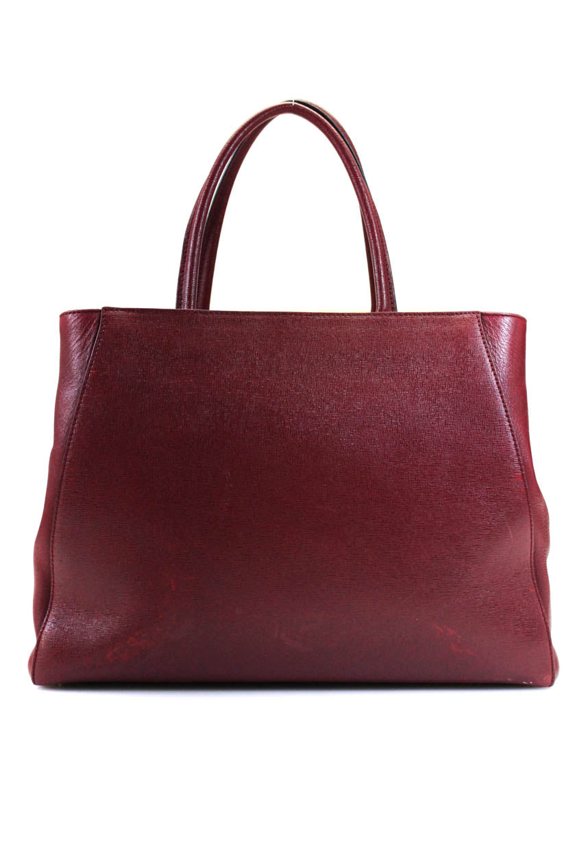Fendi Womens Double Handle Logo Framed Leather 2Jours Tote Handbag Red