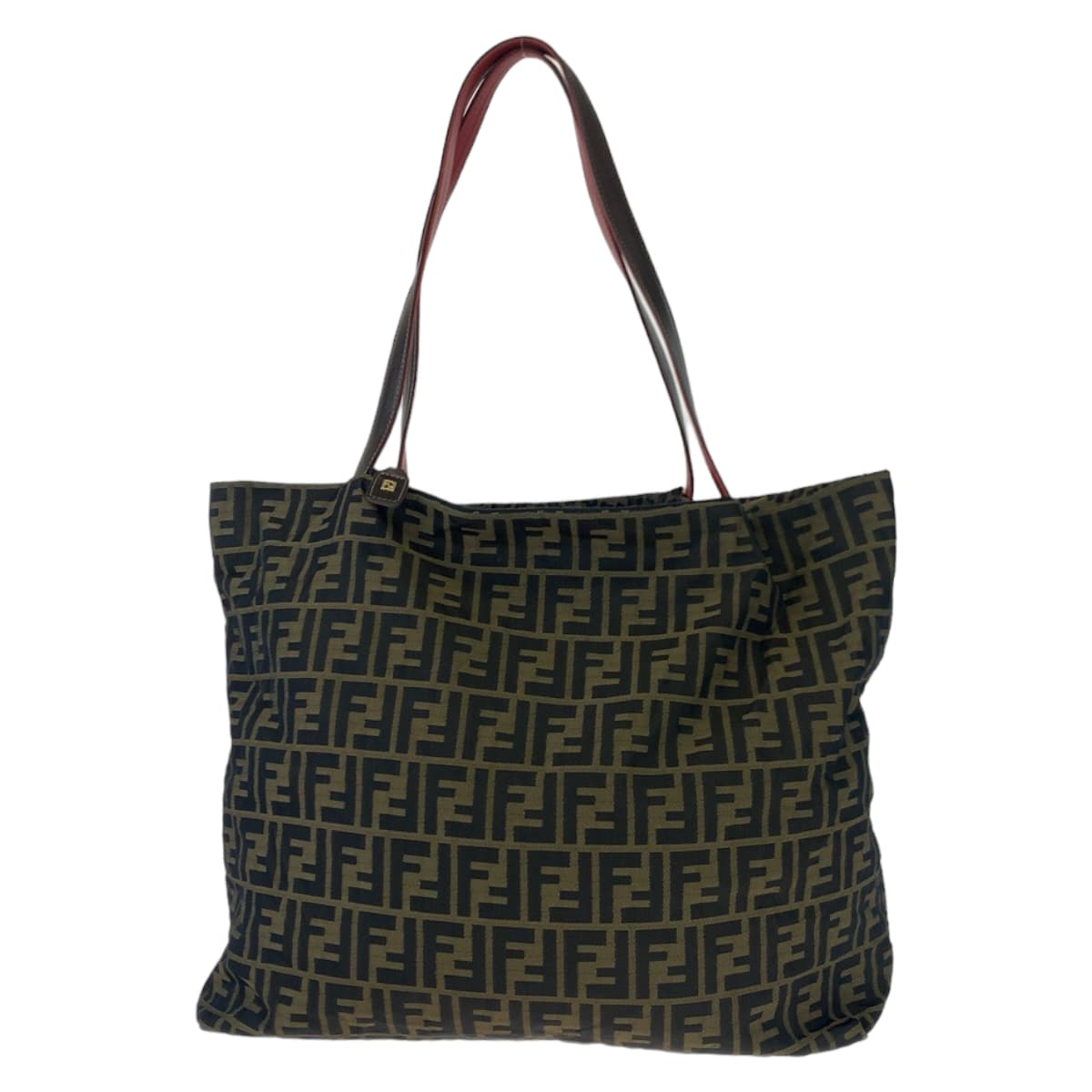 Fendi Zucca Brown Red Gold Canvas Leather Reversible Tote