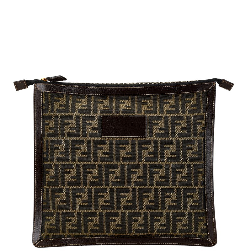 Item name : Fendi Zucca Canvas Leather Clutch Bag