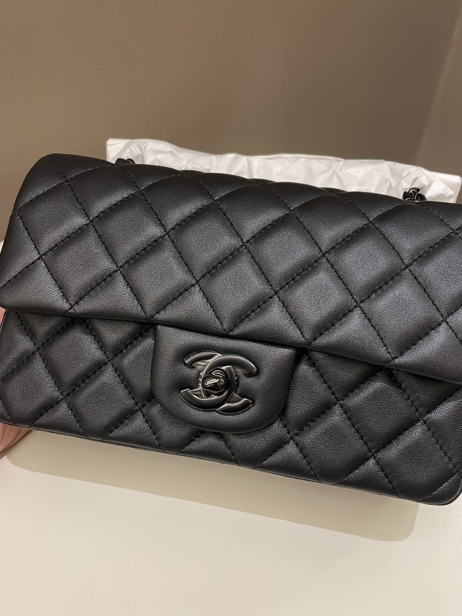 Chanel Classic So Black Quilted Mini Rectangular Black